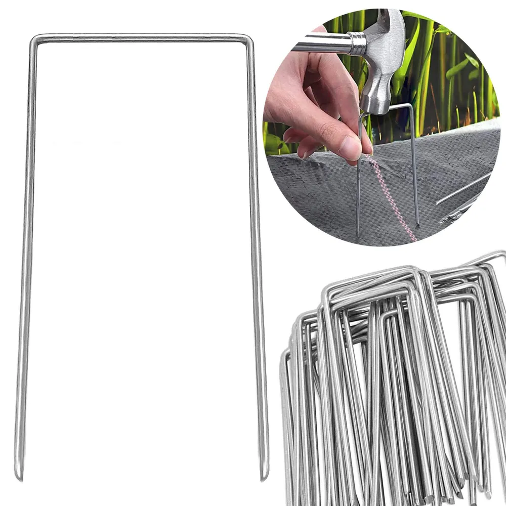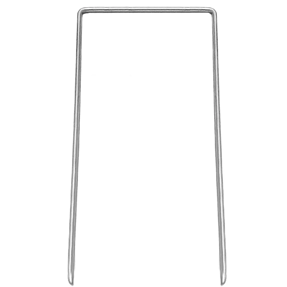 Kovové kotviace kolíky na spoľahlivé upevnenie agrotextílií, fólií a ďalšieho záhradného vybavenia. Pevný a odolný materiál. Veľká styčná plocha. Rozmer 7x15 cm. Súprava 100 ks.