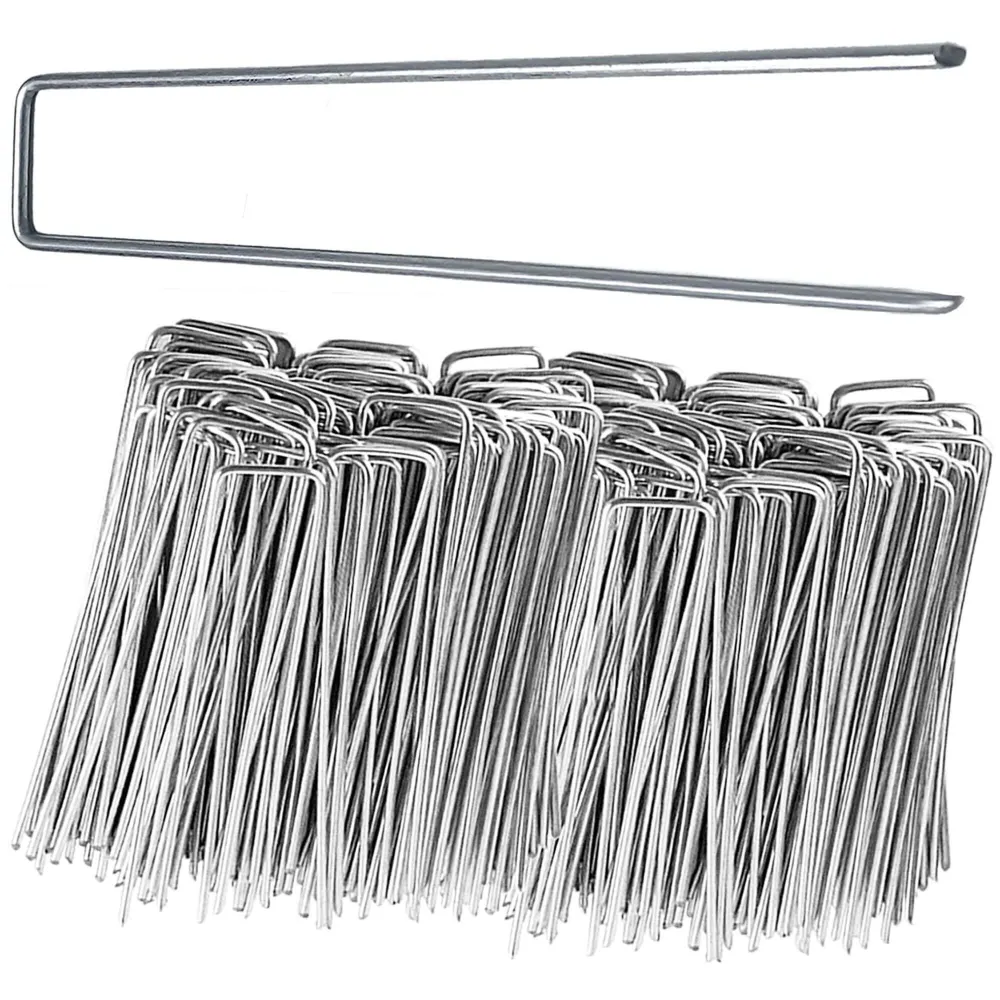 Kovové kotviace kolíky na spoľahlivé upevnenie agrotextílií, fólií a ďalšieho záhradného vybavenia. Pevný a odolný materiál. Veľká styčná plocha. Rozmer 3x15 cm. Súprava 100 ks.