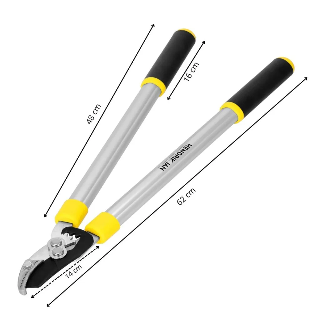 Záhradnícke nožnice s prevodovým mechanizmom a pákou. Pevný a odolný materiál. Jednoduché použitie, nízka hmotnosť, ergonomická rukoväť. Dva povrchy, tupý a rezný, praktická ochrana čepele. Nevyhnutný doplnok pre každého záhradníka, vhodný na rezanie aj modelovanie.