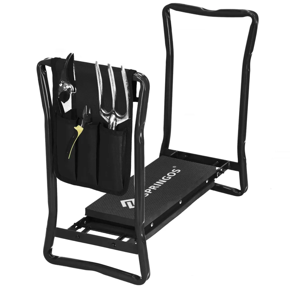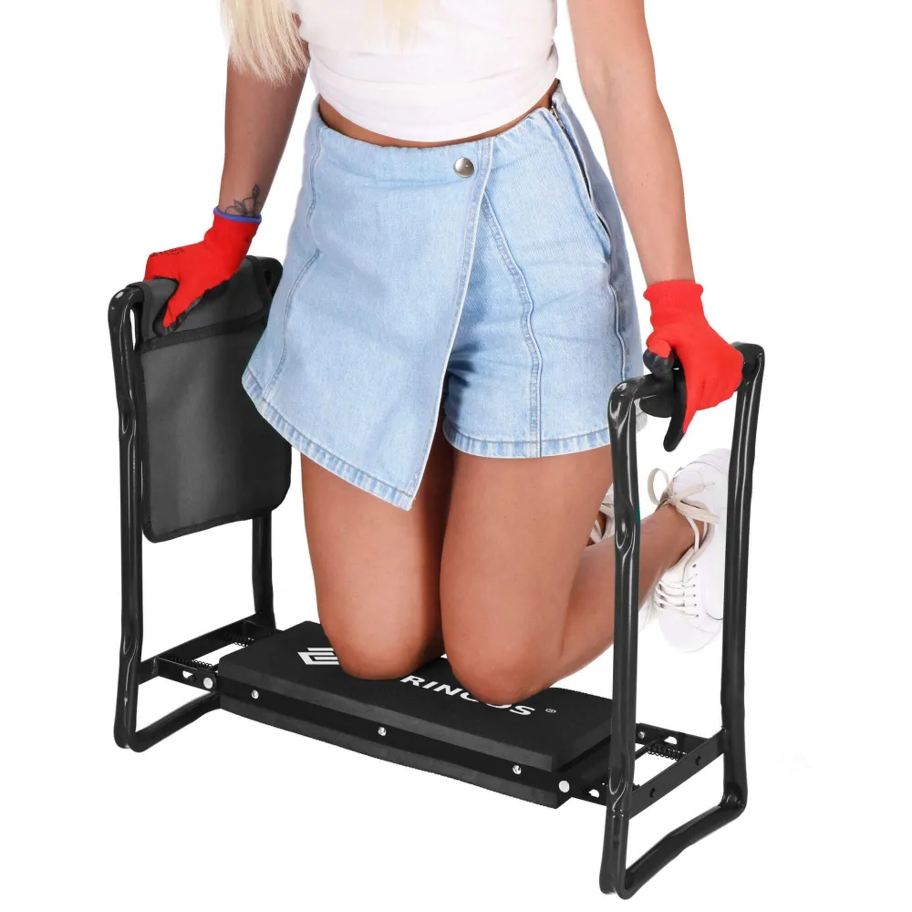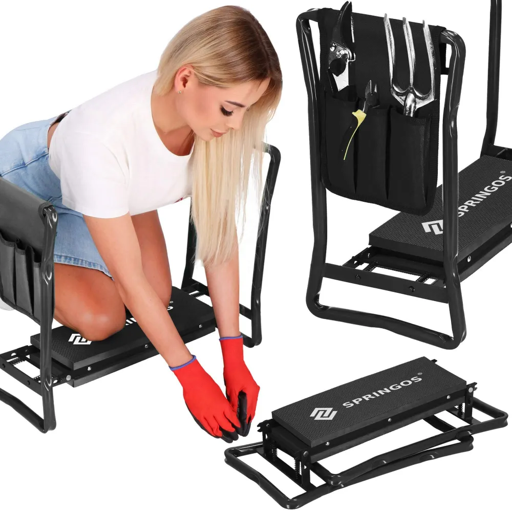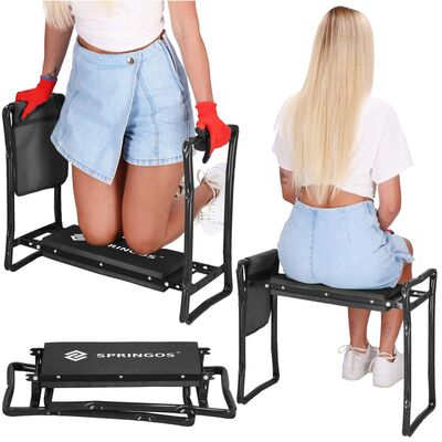 Záhradné kľakadlo 2v1 SPRINGOS KLETO čierne je praktický a multifunkčný pomocník, ktorý spríjemňuje a uľahčuje všetky záhradné práce. Vďaka svojej premyslenej konštrukcii ponúka dve funkcie v jednom – slúži ako kľakacia stolička , ktorá chráni kolená pred tvrdým a studeným povrchom, a jednoduchým otočením sa premení na pohodlnú stoličku na sedenie.