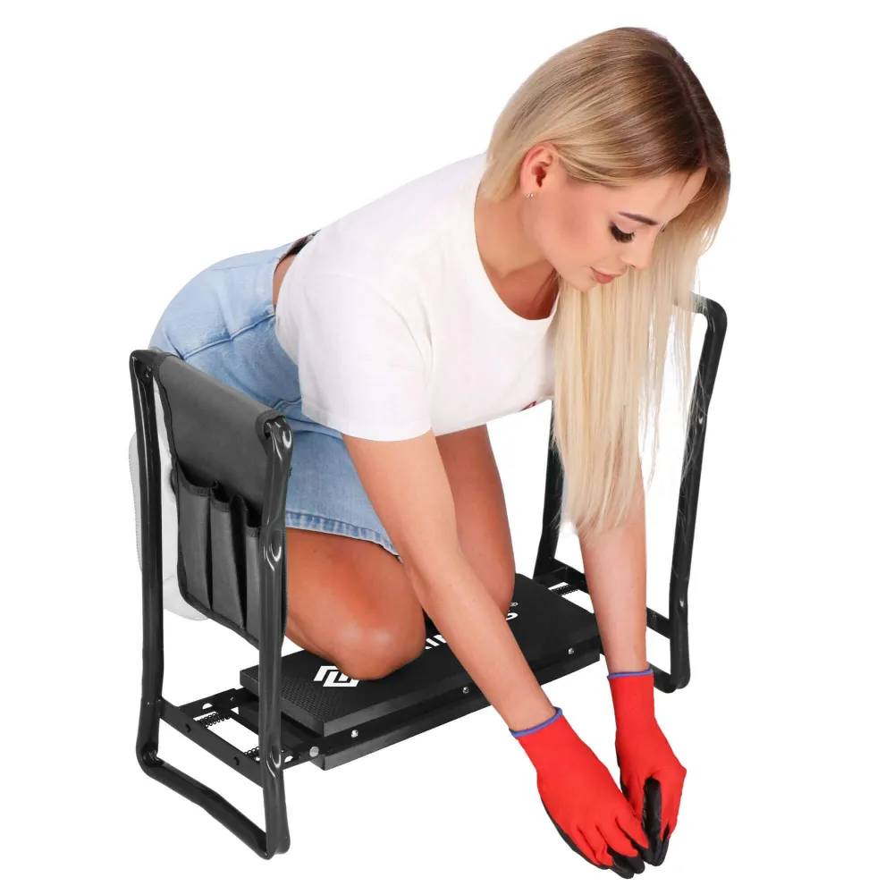 Záhradné kľakadlo 2v1 je nevyhnutnosťou pre pohodlnú prácu na záhrade. Vďaka mäkkej podložke z EVA peny odstraňuje nepohodlie a znižuje únavu. Multifunkčná záhradná stolička kľakačka sa ľahko skladá, šetrí miesto a je ľahká na prenášanie. Súčasťou je priestranný látkový organizér-vreckár na suchý zips na uloženie náradia. Stačí ju prevrátiť a získate stoličku na sedenie a odpočinok. Kľakacia stolička je ideálny pomocník pre všetky druhy záhradných prác.