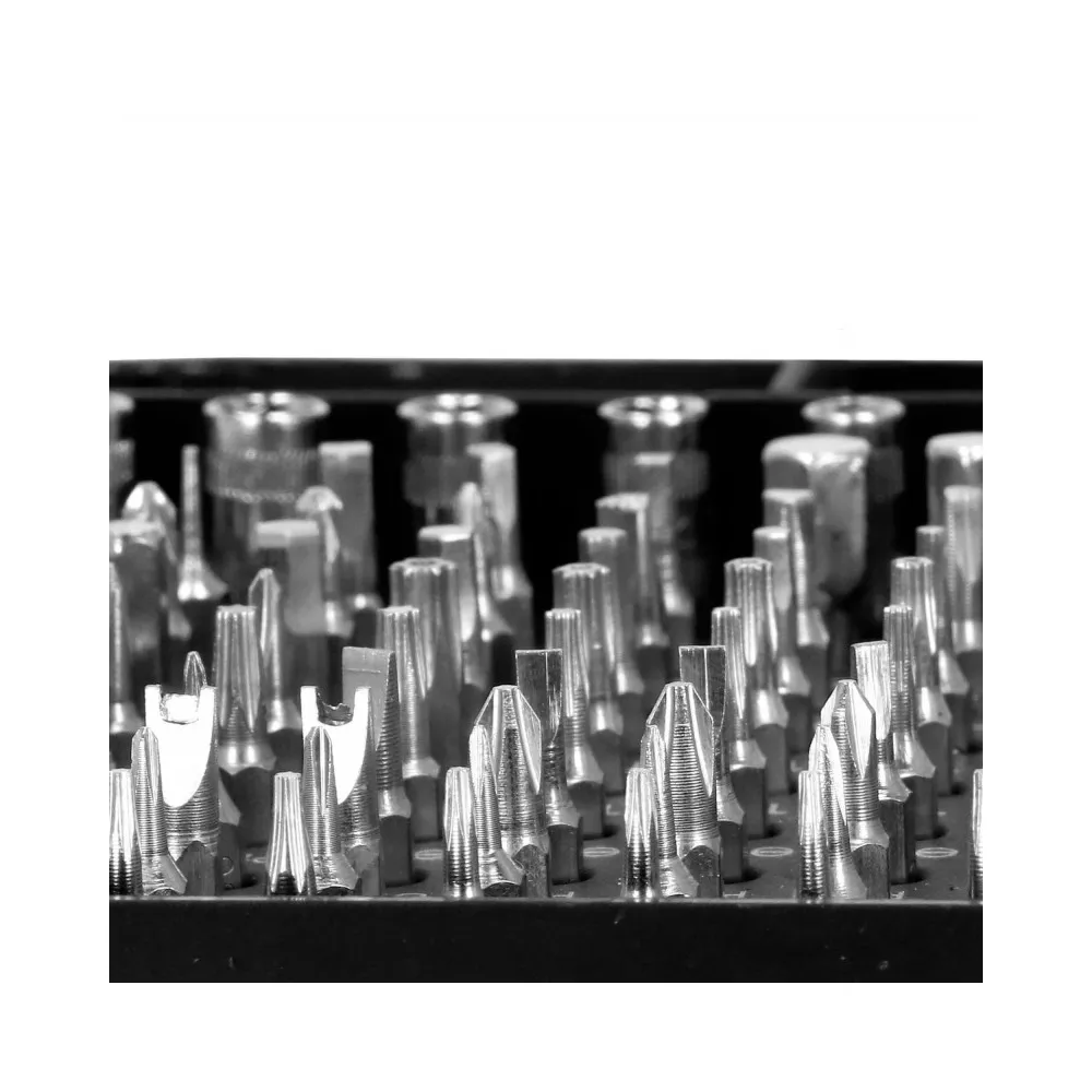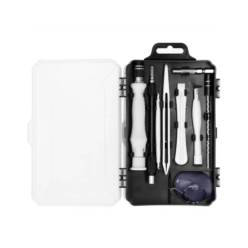 Súprava náradia na opravu elektroniky ponúka všetko potrebné na rýchlu a presnú prácu. Náradie z ocele a plastu zaručuje dlhú životnosť a pohodlné používanie. Oceľové skrutkovače sú odolné voči deformácii a poškodeniu. Plastové prvky sú ohybné a protišmykové, čo zaisťuje komfort a prístup na ťažko dostupné miesta. Ľahko opravíte počítače, mobilné telefóny, herné konzoly a ďalšie zariadenia.
