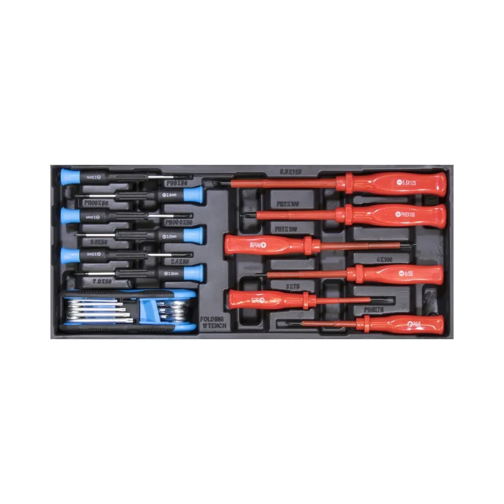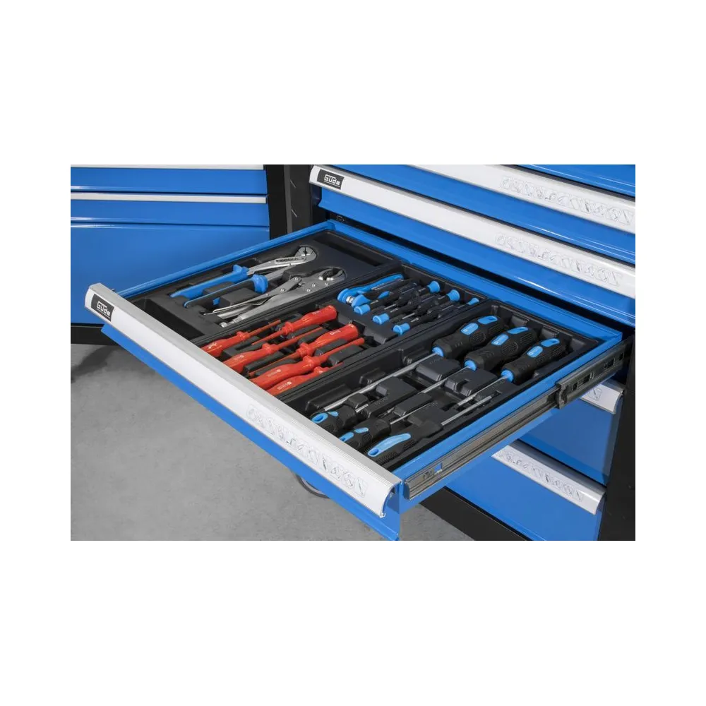 Sada náradia z chróm-vanádiovej ocele obsahuje 3 račne na prepínanie (1/2", 3/8", 1/4"), predĺženie, kardanové kĺby,...