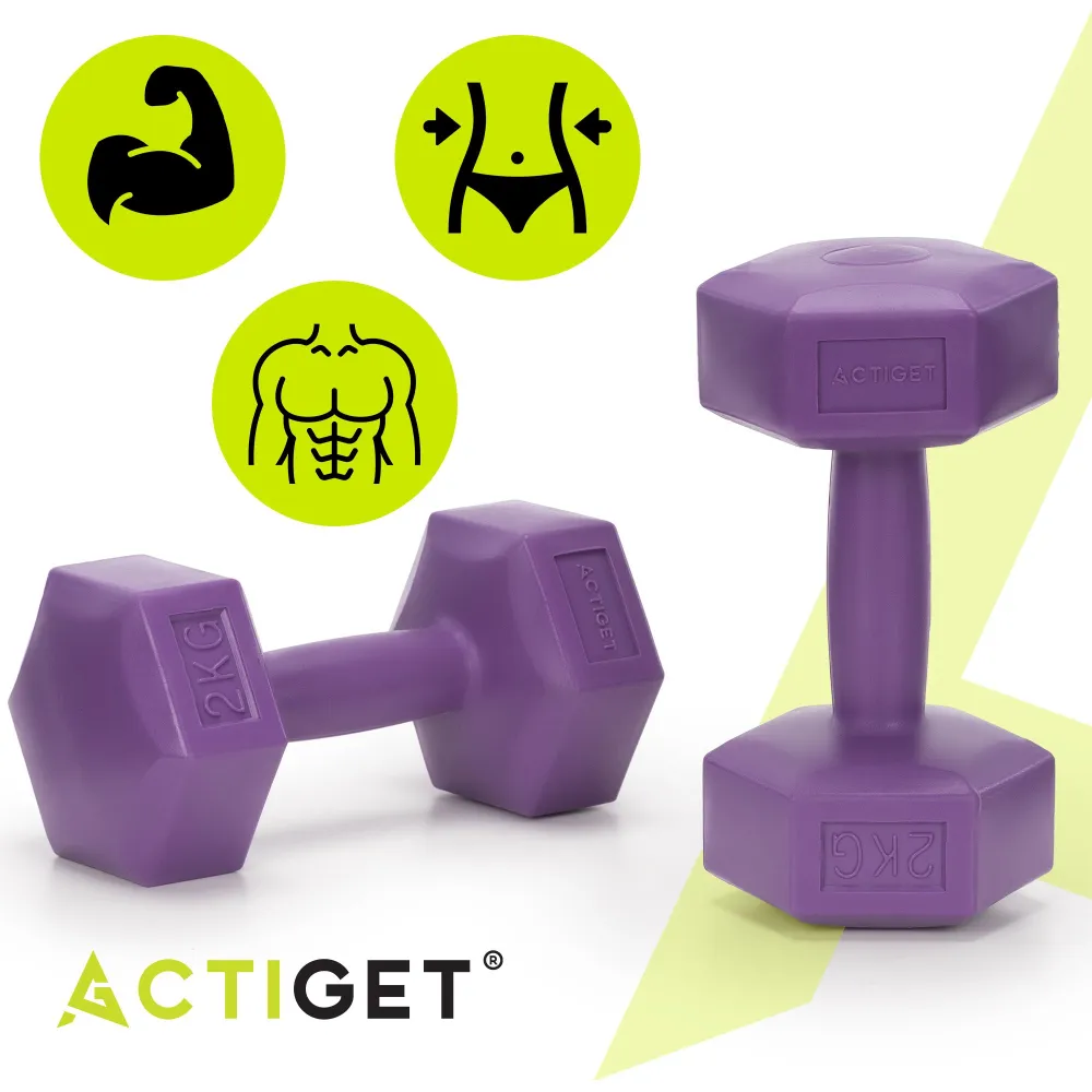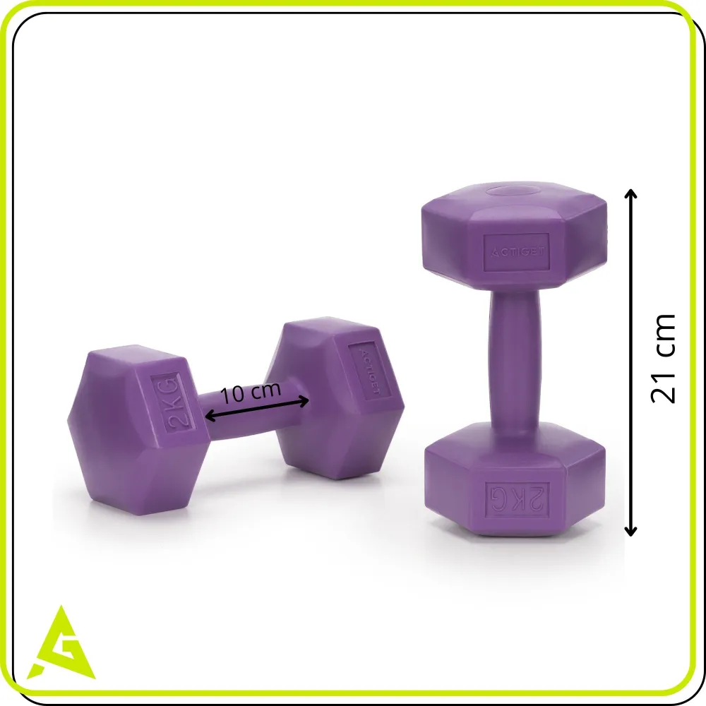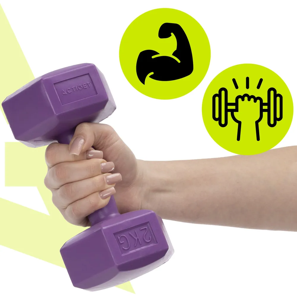 Súprava činiek 2x2 kg HEX ACTIGET ACT0158 fialová je vhodná pre efektívne posilňovanie a formovanie hornej časti tela. Hmotnosť 2x2 kg umožňuje intenzívnejší tréning a rýchlejšie budovanie sily. Jednoručné činky podporujú prirodzený rozsah pohybu a lepšiu kontrolu pri každom cviku. Šesťuholníkový tvar proti kotáleniu zaisťuje bezpečné odloženie bez pohybu.
