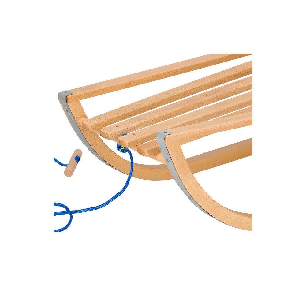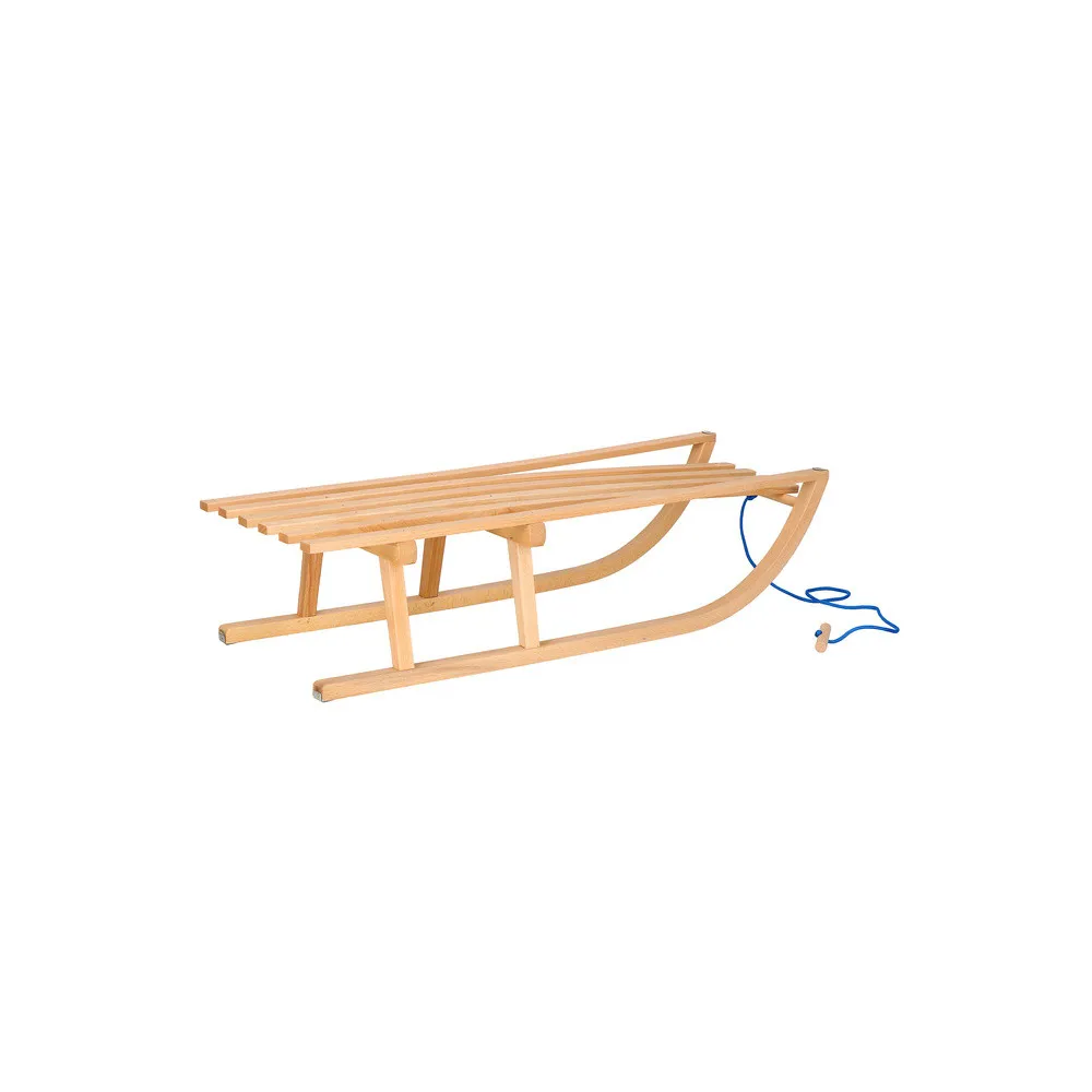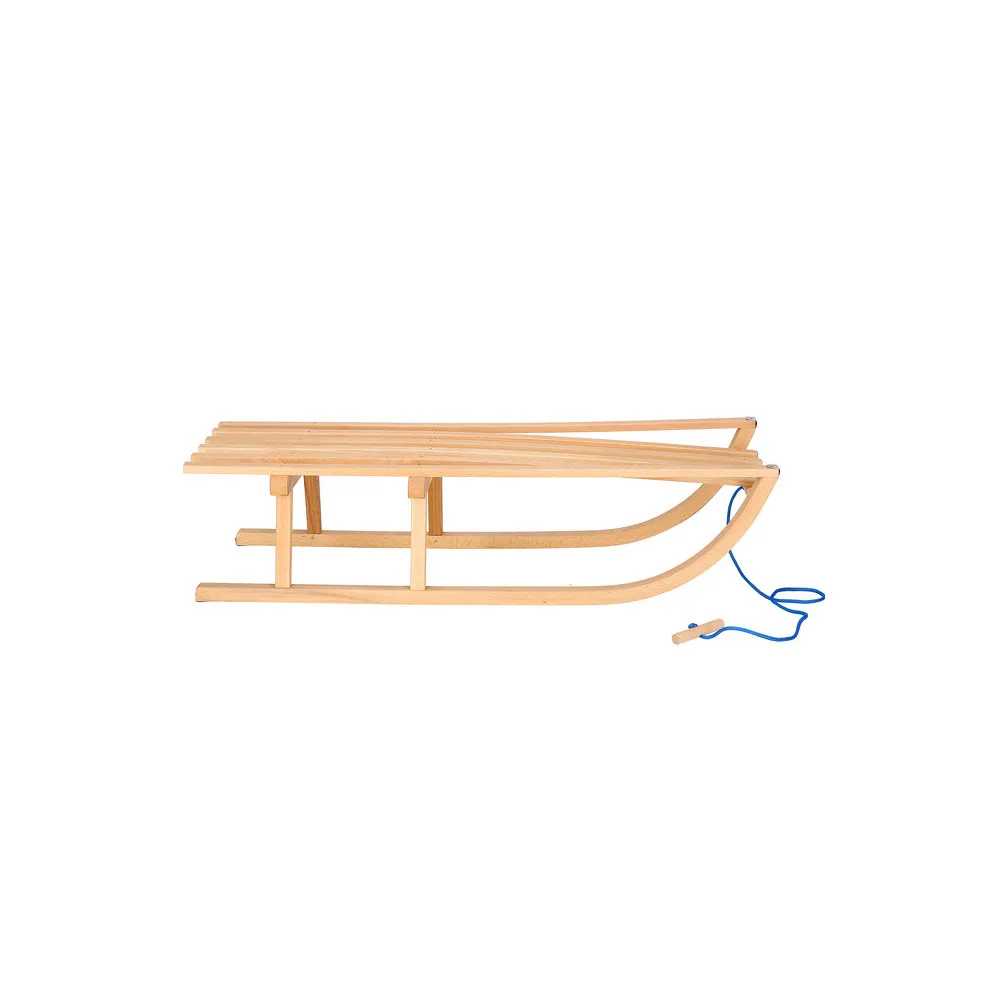 Klasické celodrevené sane s ohrádkou, komfortným madlom a ťažným popruhom. Vhodné pre najmenšie deti už od 3 rokov.