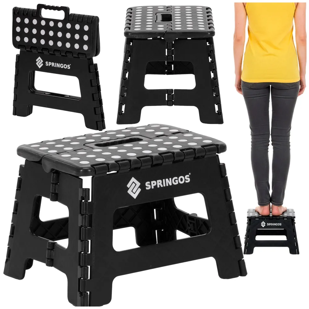 Skladacia stolička SPRINGOS HA7567 čierna je praktickým pomocníkom do každej domácnosti, kuchyne, dielne aj kancelárie. Vďaka pevnej konštrukcii z odolného PP materiálu ponúka vysokú nosnosť až 150 kg , takže je vhodná pre dospelých aj deti. Protišmykové nožičky zaisťujú stabilitu a bezpečné používanie aj na hladkých povrchoch, zatiaľ čo kompaktná výška umožňuje pohodlné dosiahnutie do vyšších miest.