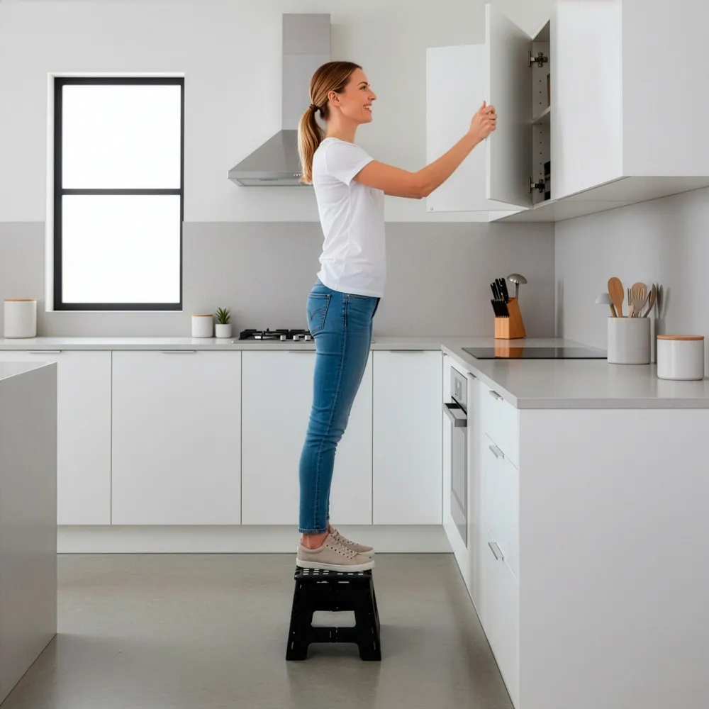 Praktická skladacia stolička je ideálnym pomocníkom do domácnosti, kuchyne aj dielne. Ponúka pevnú konštrukciu s nosnosťou až 150 kg a protišmykové nožičky na bezpečné používanie. Po zložení je veľmi skladná a vďaka integrovanému madlu sa ľahko prenáša. Vhodná pre dospelých aj deti pri dosahovaní do vyšších miest.