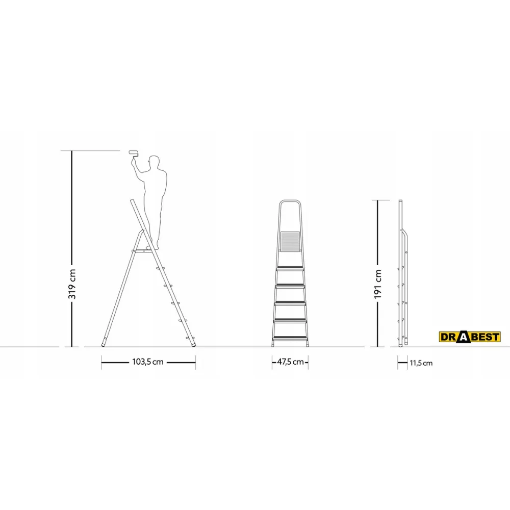 Hliníkové schodíky 7 stupňov jednostranné DRABEST ALD7 MAX