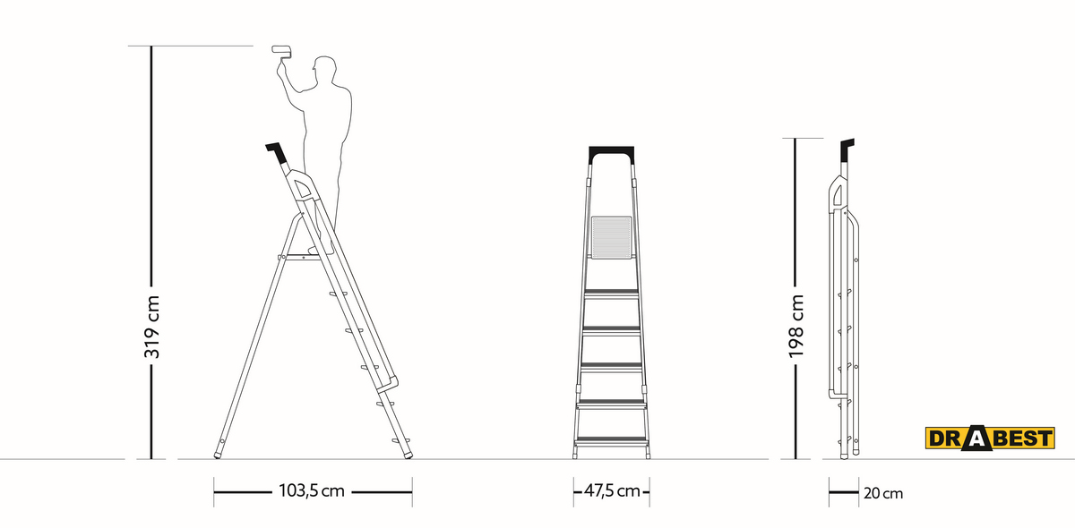 Hliníkové schodíky DRABEST ALDP+P-6 PRO sú vhodné na každodenné intenzívne používanie v priemysle, na stavbe a ďalších náročných odboroch vyžadujúcich nekompromisnú kvalitu. Schodíky spĺňajú prísne bezpečnostné normy podľa normy EN 131. Nosnosť činí 150 kg.
