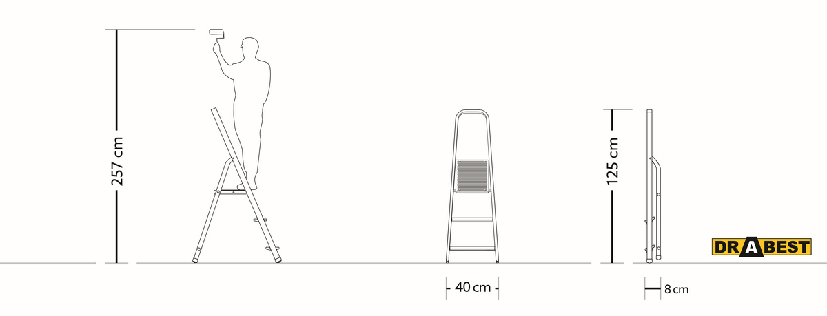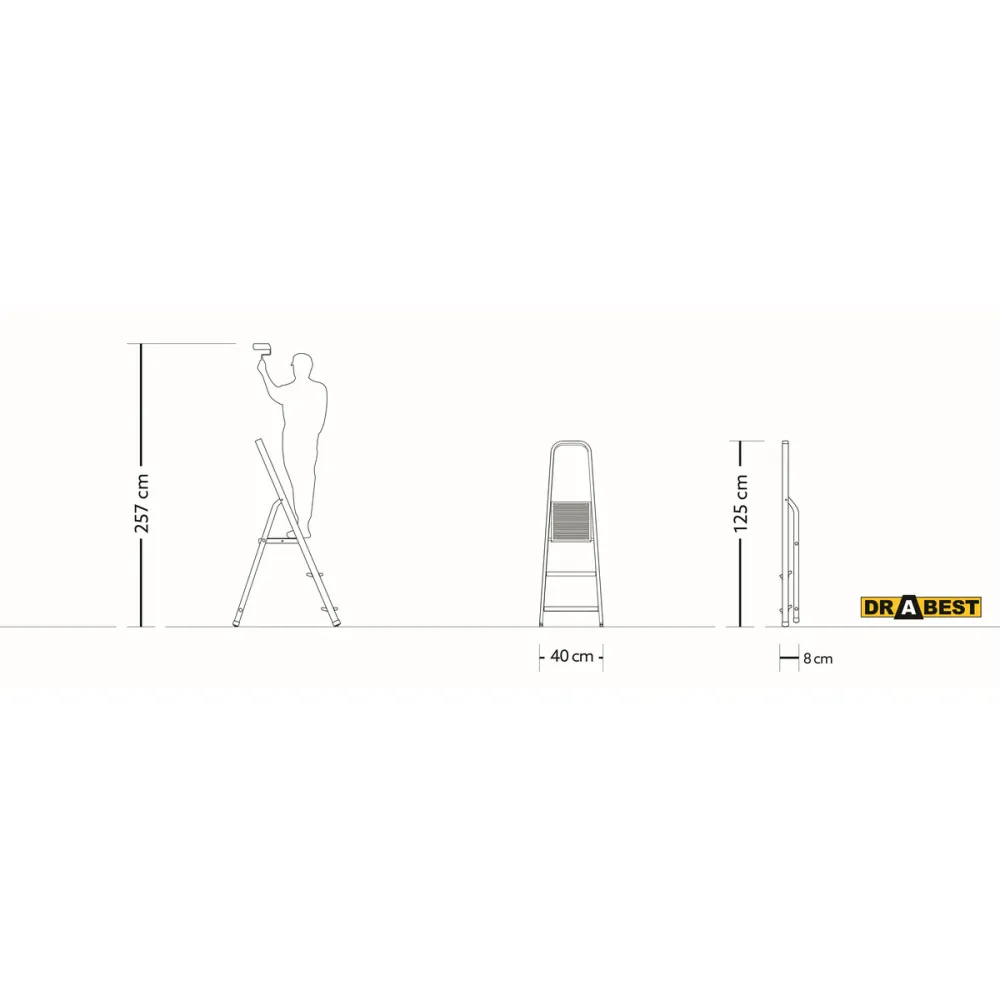 Oceľové schodíky DRABEST STD3 HOME sú vhodné na každodenné práce v domácnosti alebo na záhrade. Kombinujú v sebe pevnosť a vynikajúcu stabilitu. Vysoké madlo poskytuje pri ich používaní mimoriadnu oporu a bezpečnosť. Nosnosť činí 125 kg.