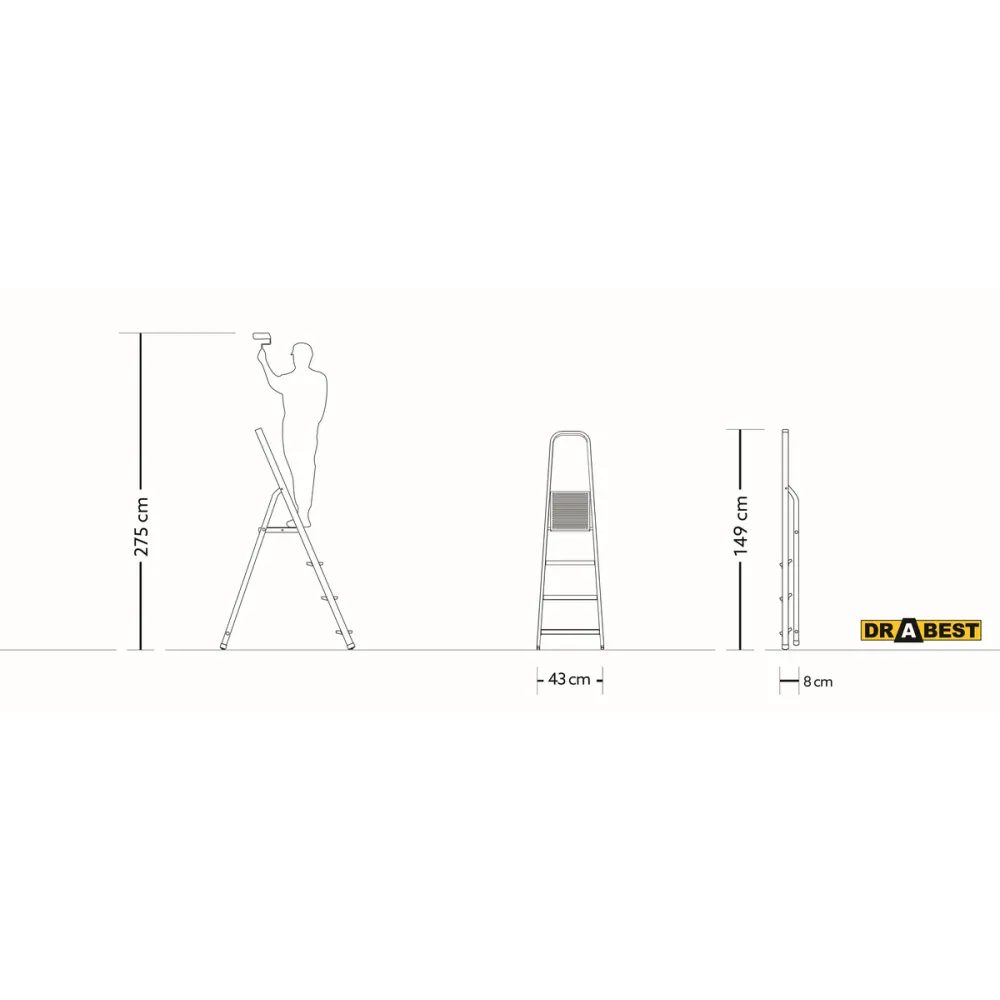 Oceľové schodíky DRABEST STD4 HOME sú vhodné na každodenné práce v domácnosti alebo na záhrade. Kombinujú v sebe pevnosť a vynikajúcu stabilitu. Vysoké madlo poskytuje pri ich používaní mimoriadnu oporu a bezpečnosť. Nosnosť činí 125 kg.