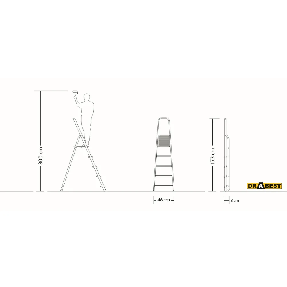 Oceľové schodíky DRABEST STD5 HOME sú vhodné na každodenné práce v domácnosti alebo na záhrade. Kombinujú v sebe pevnosť a vynikajúcu stabilitu. Vysoké madlo poskytuje pri ich používaní mimoriadnu oporu a bezpečnosť. Nosnosť činí 125 kg.