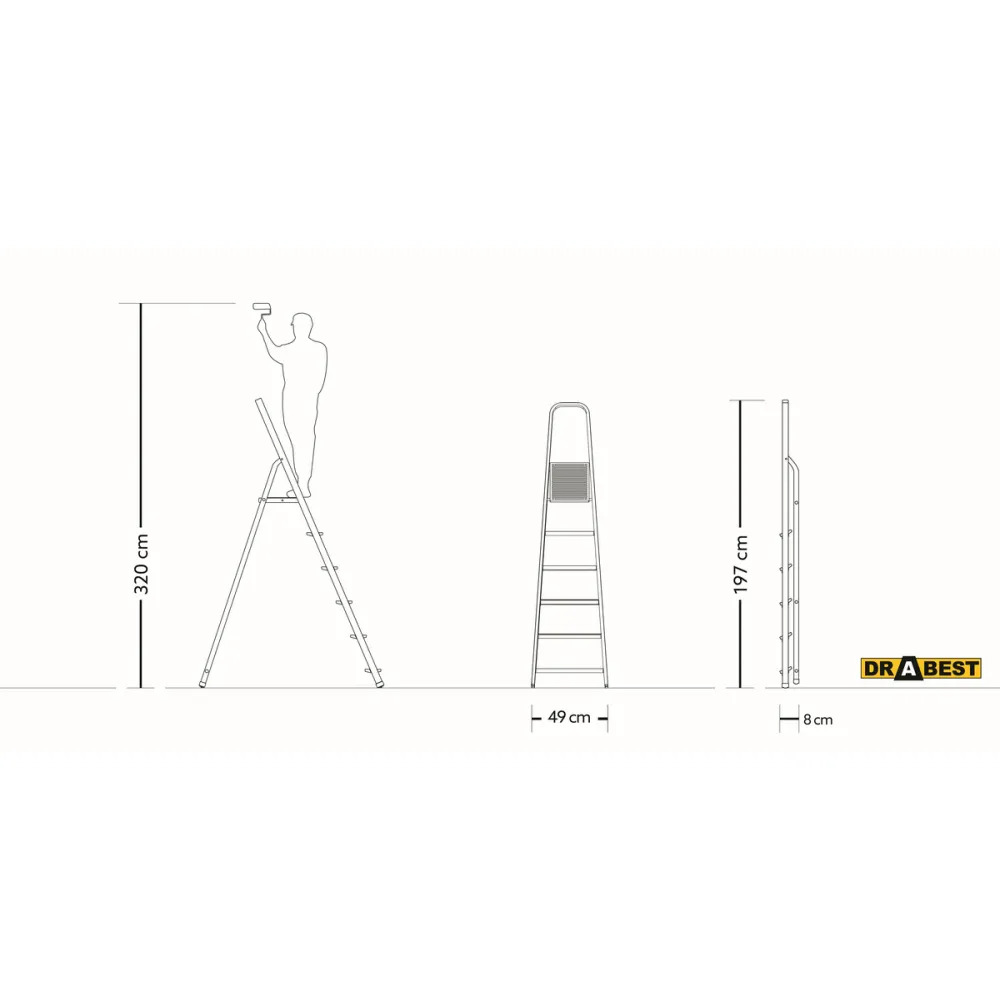 Oceľové schodíky DRABEST STD6 HOME sú vhodné na každodenné práce v domácnosti alebo na záhrade. Kombinujú v sebe pevnosť a vynikajúcu stabilitu. Vysoké madlo poskytuje pri ich používaní mimoriadnu oporu a bezpečnosť. Nosnosť činí 125 kg.