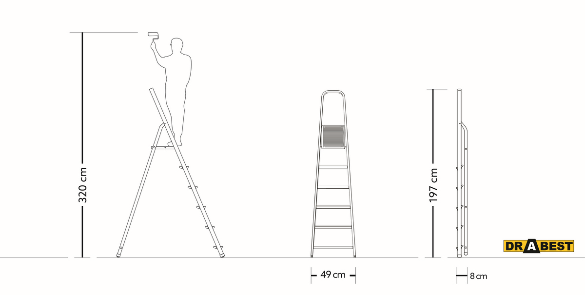 Oceľové schodíky DRABEST STD6 HOME sú vhodné na každodenné práce v domácnosti alebo na záhrade. Kombinujú v sebe pevnosť a vynikajúcu stabilitu. Vysoké madlo poskytuje pri ich používaní mimoriadnu oporu a bezpečnosť. Nosnosť činí 125 kg.