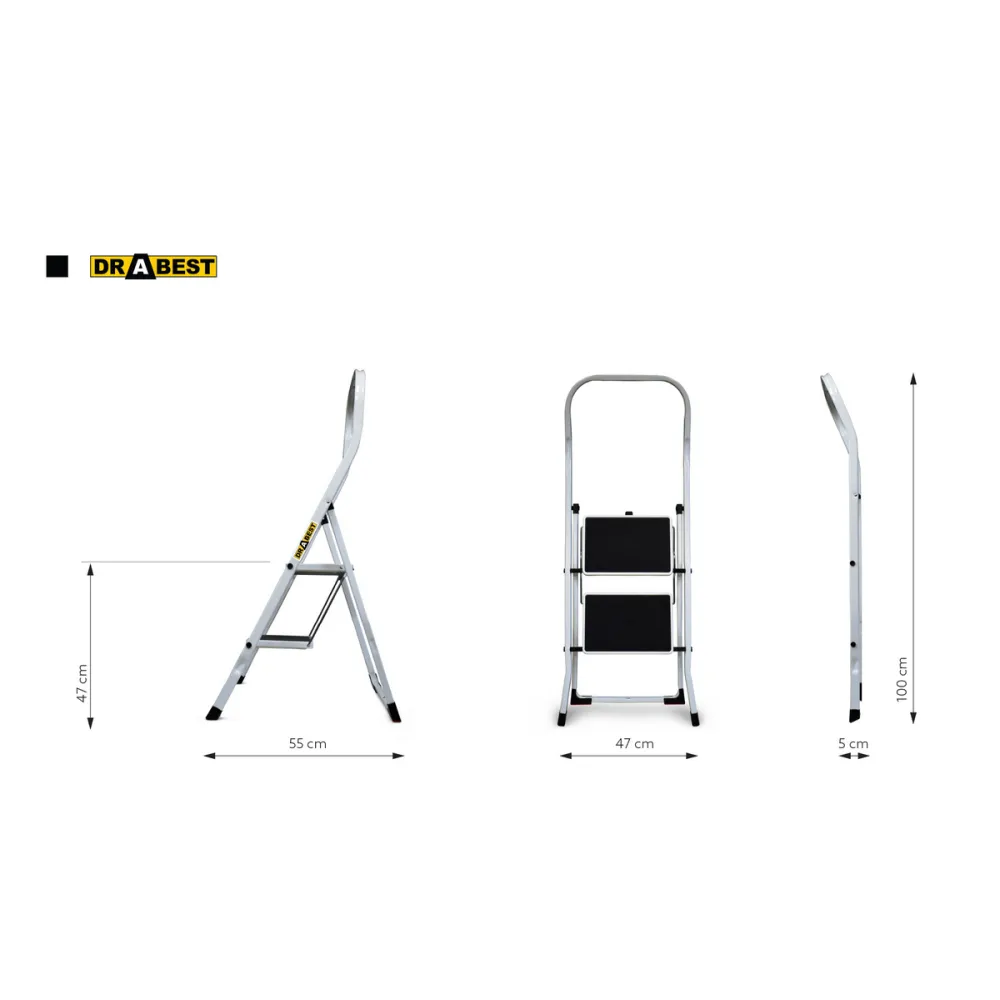 Oceľové schodíky DRABEST KITCHEN-2 PRO sú vhodné na každodenné práce v kuchyni, domácnosti, kancelárii, obchode alebo sklade. Kombinujú v sebe pevnosť a vynikajúcu stabilitu. Rozšírené stupne nášľapov sú opatrené protišmykovou gumou, čo zaručuje mimoriadnu stabilitu a bezpečnosť. Schodíky spĺňajú prísne bezpečnostné normy podľa EN 141383. Nosnosť činí 150 kg.