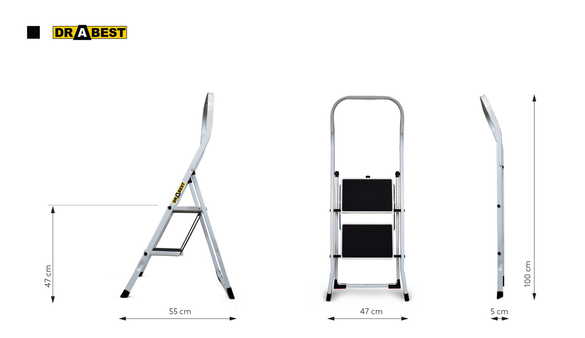 Oceľové schodíky DRABEST KITCHEN-2 PRO sú vhodné na každodenné práce v kuchyni, domácnosti, kancelárii, obchode alebo sklade. Kombinujú v sebe pevnosť a vynikajúcu stabilitu. Rozšírené stupne nášľapov sú opatrené protišmykovou gumou, čo zaručuje mimoriadnu stabilitu a bezpečnosť. Schodíky spĺňajú prísne bezpečnostné normy podľa EN 141383. Nosnosť činí 150 kg.
