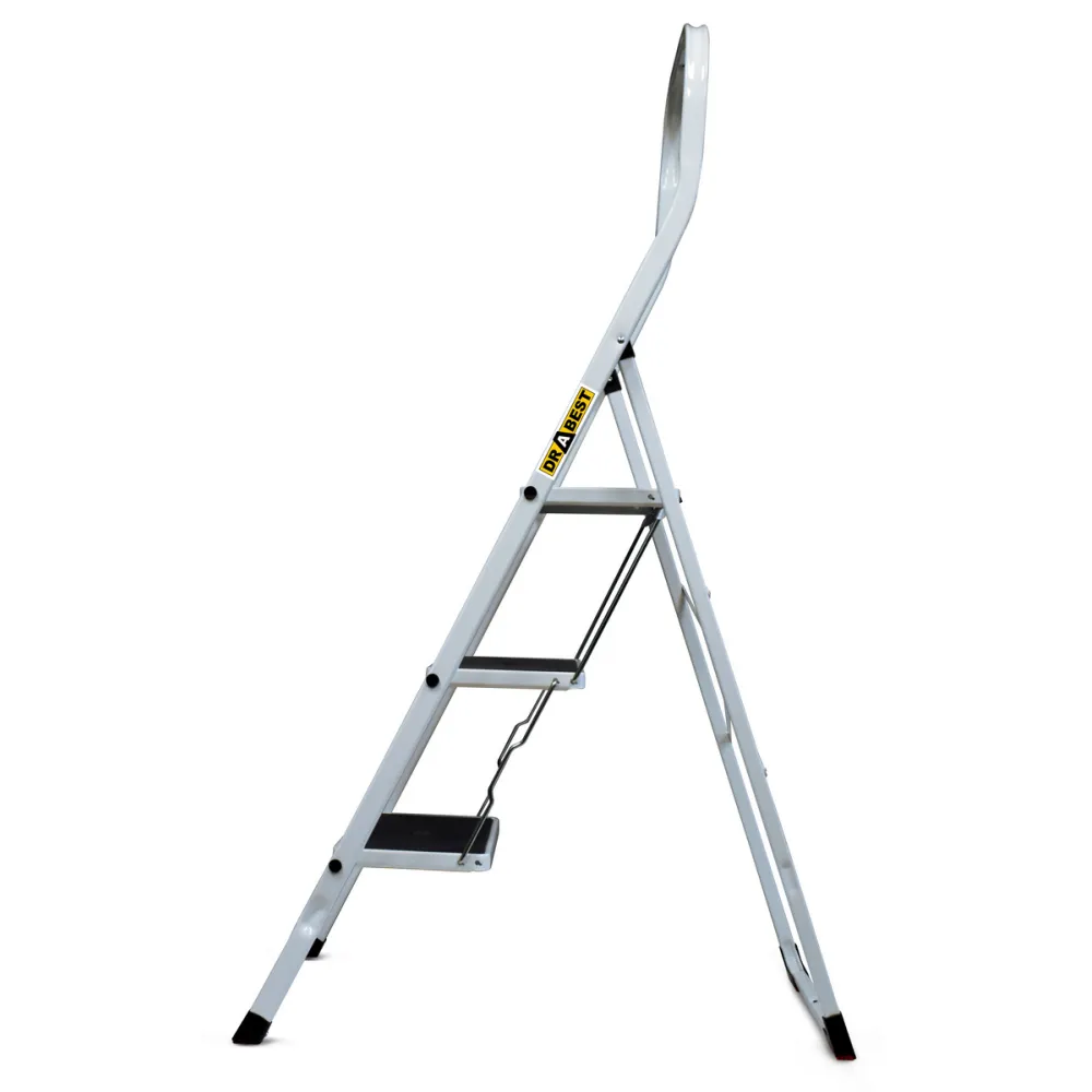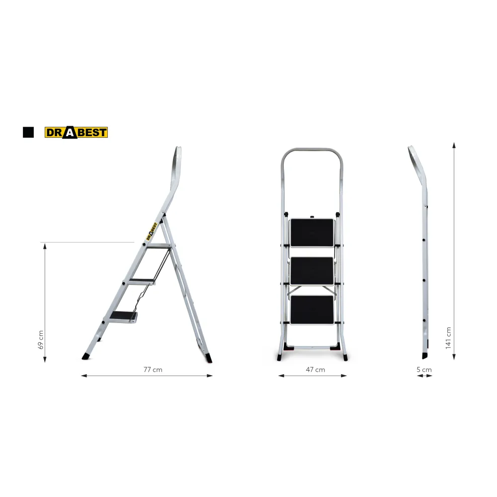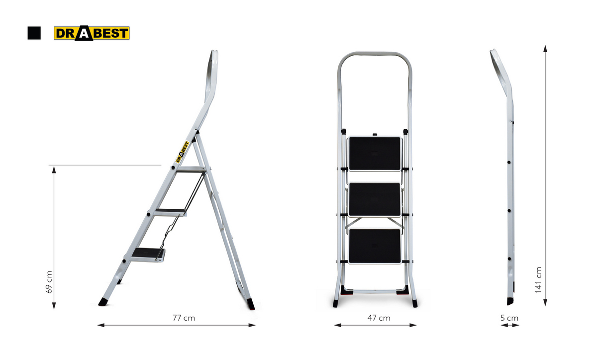 Oceľové schodíky DRABEST KITCHEN-3 PRO sú vhodné na každodenné práce v kuchyni, domácnosti, kancelárii, obchode alebo sklade. Kombinujú v sebe pevnosť a vynikajúcu stabilitu. Rozšírené stupne nášľapov sú opatrené protišmykovou gumou, čo zaručuje mimoriadnu stabilitu a bezpečnosť. Schodíky spĺňajú prísne bezpečnostné normy podľa EN 141383. Nosnosť činí 150 kg.