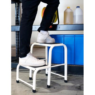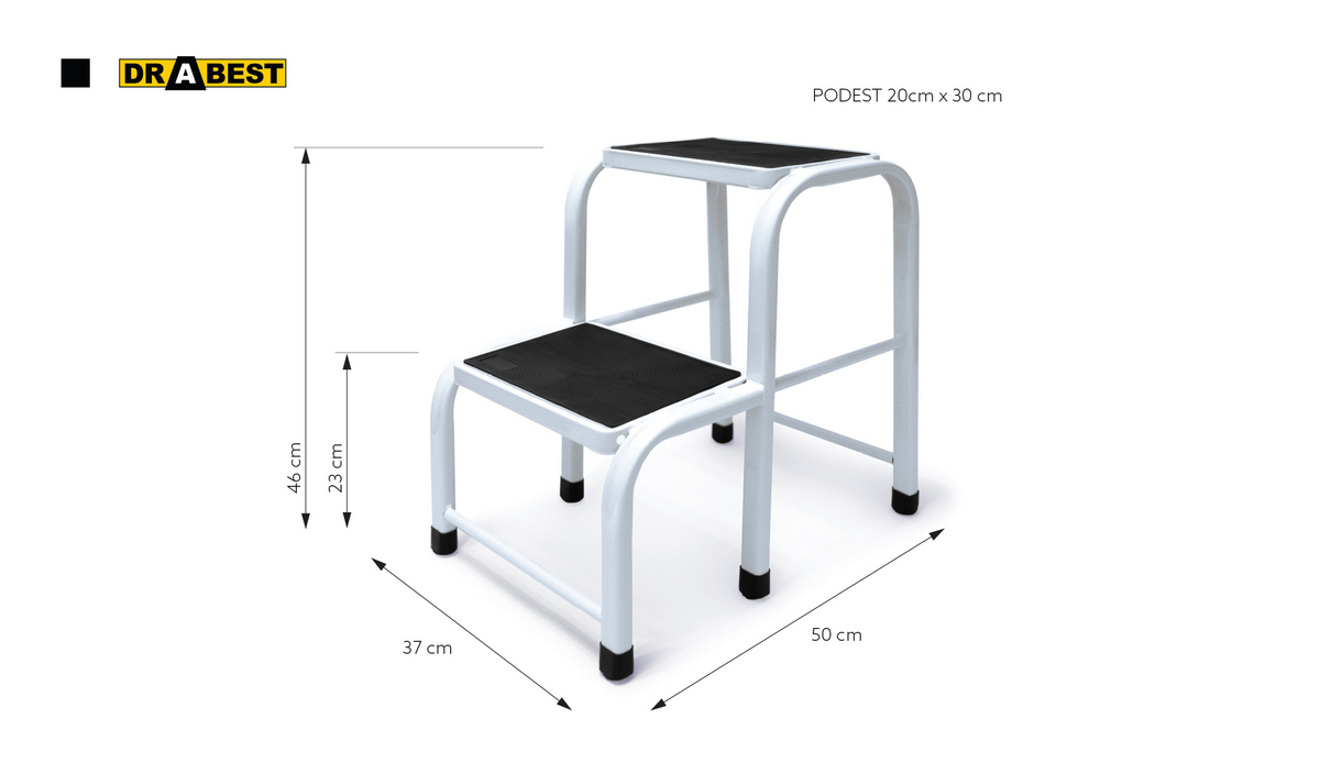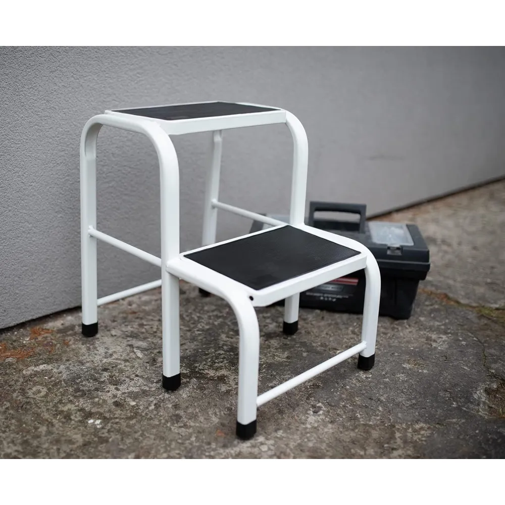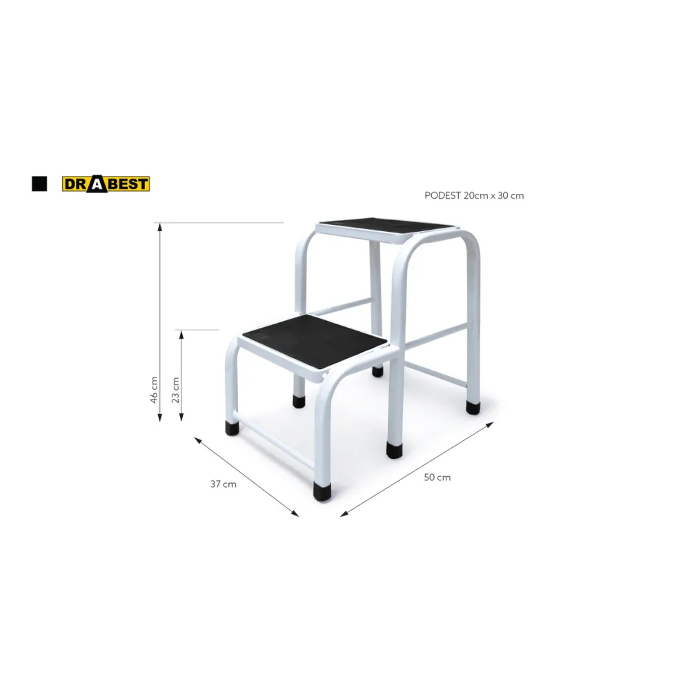Oceľová stolička 2 stupne DRABEST TABURET-2 PRE biela