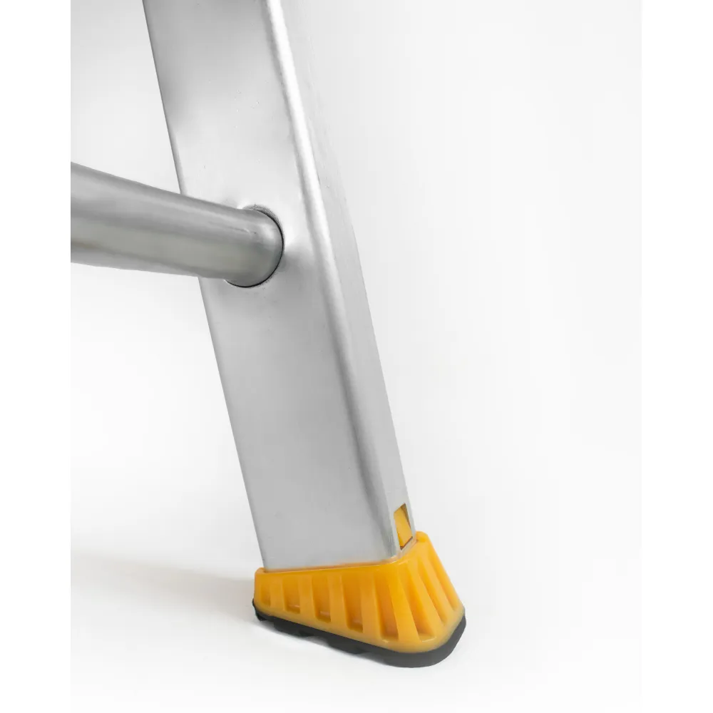 Pre väčšie pohodlie sú schodíky vybavené predĺženými nášľapmi o šírke 120 mm , ktoré poskytujú dostatočnú oporu a znižujú únavu pri dlhšom státí. Praktická integrovaná polička na náradie a háčik na uchytenie vedra umožňujú efektívnejšiu prácu bez nutnosti neustáleho zostupovania. Protišmykové pätky zaisťujú pevné uchytenie k podlahe a minimalizujú riziko nechceného pohybu.