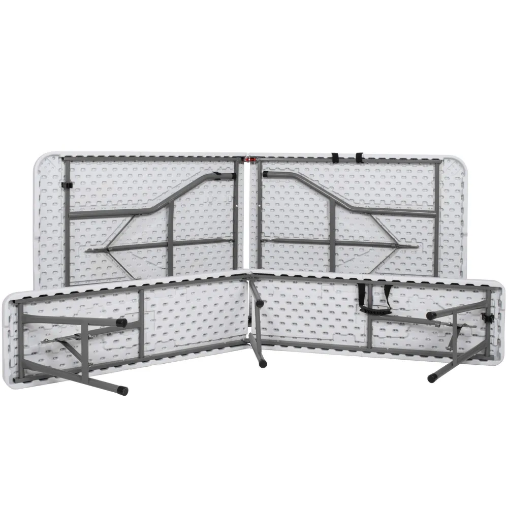 Cateringový set pre 8 osôb obsahuje jedálenský stôl + 2 lavice. Pohodlný a praktický nábytok na záhrady, terasy, oslavy, špeciálne akcie alebo turistické výlety Ľahko čistiteľný materiál. Rýchle zloženie a rozloženie so zámkovým mechanizmom je možné jednoducho uskladniť do veľkosti kufra pre ešte jednoduchšiu manipuláciu.