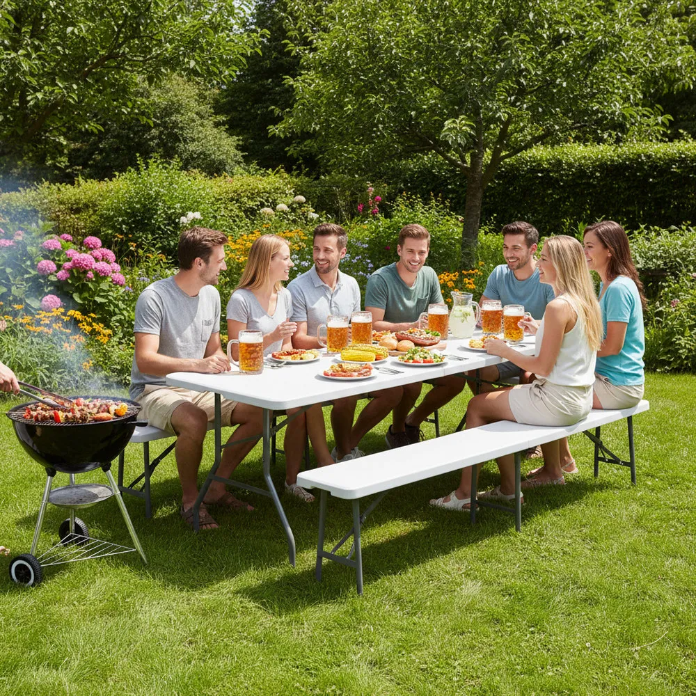 Pivný set pre 8 osôb 180x74 cm SPRINGOS GF0099 biely je praktické riešenie pre pohodlné posedenie pri rodinných oslavách, grilovaní aj záhradných párty . Ponúka dostatok priestoru pre viac osôb , čo z neho robí ideálnu voľbu pre spoločenské akcie aj každodenné použitie.