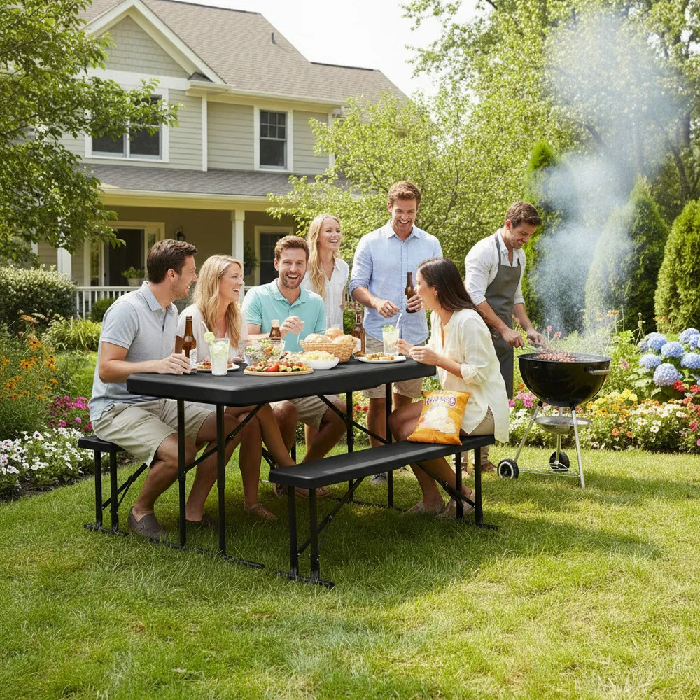 Pivný set pre 6 osôb 105x64 cm SPRINGOS GF0097 čierny je praktické riešenie pre pohodlné posedenie pri rodinných oslavách, grilovaní aj záhradných párty . Ponúka dostatok priestoru pre viac osôb , čo z neho robí ideálnu voľbu pre spoločenské akcie aj každodenné použitie.
