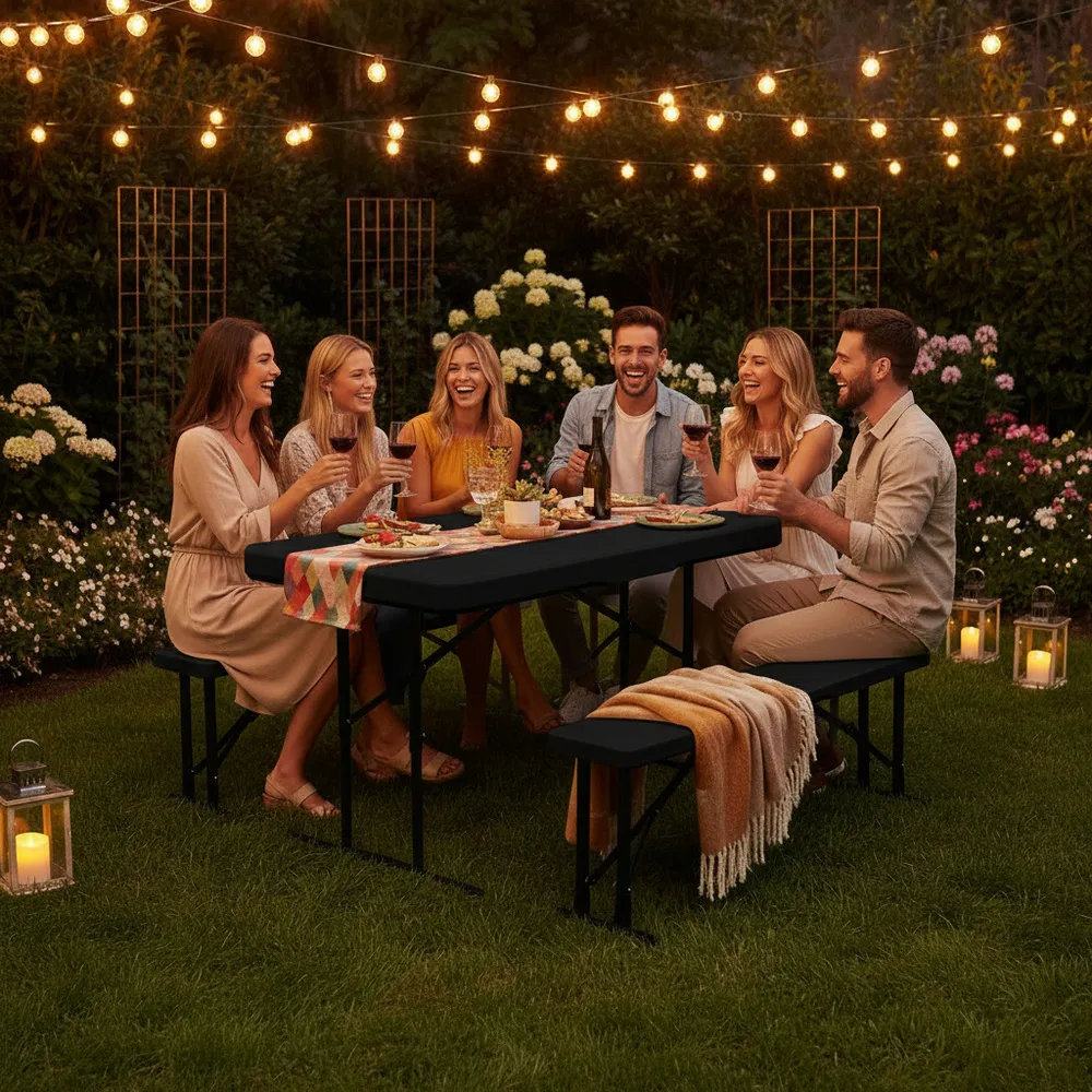 Veľkou výhodou je skladací mechanizmus , ktorý umožňuje rýchle rozloženie aj zloženie podľa potreby . Po zložení zaberá minimum miesta, čo uľahčuje skladovanie aj transport. Ľahká manipulácia a univerzálne využitie robia zo setu ideálny doplnok pre každú príležitosť.