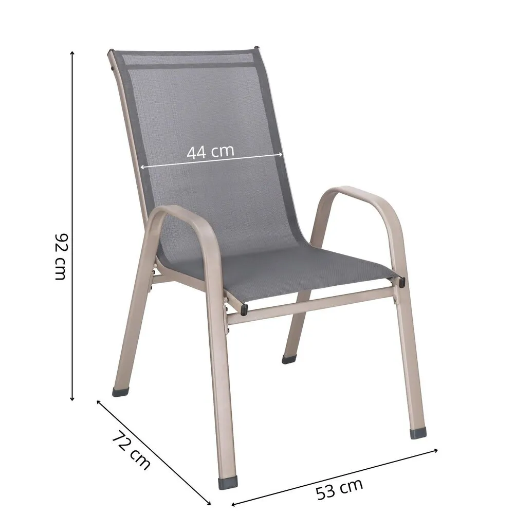 Set 4x záhradná stolička SPRINGOS MONZA GF0072H v elegantnej šedej farbe je ideálnou voľbou pre balkón, terasu aj záhradu. Tieto stoličky zaujmú vysokým operadlom a širokými podrúčkami , ktoré zaisťujú maximálne pohodlie pri sedení. Textilný podsedák je navrhnutý tak, aby bol priedušný a neabsorboval vlhkosť , čo z neho robí perfektné riešenie pre vonkajšie použitie.