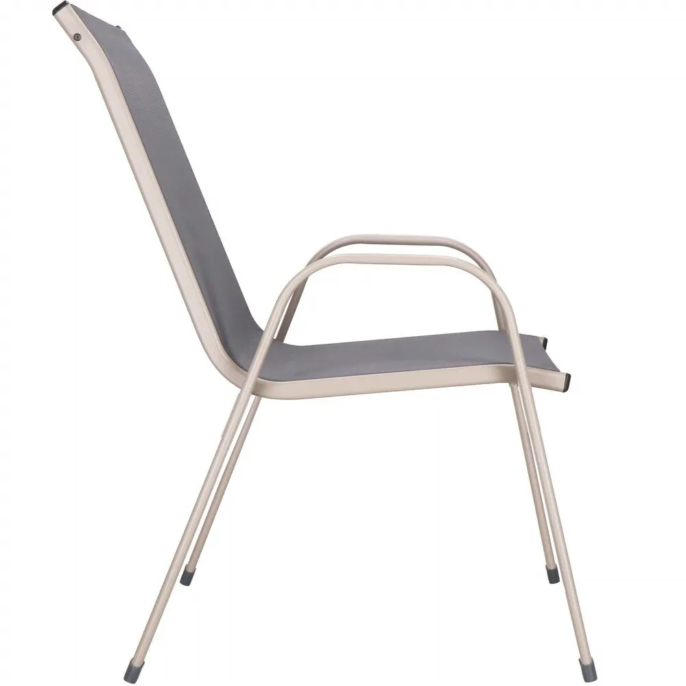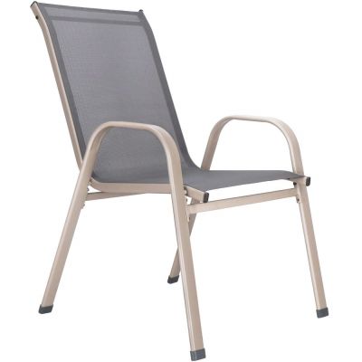 Pohodlné vonkajšie stoličky s vysokým operadlom a širokými podrúčkami zaistia komfort pri sedení. Textilný podsedák je priedušný a neabsorbuje vlhkosť, ideálny pre každé počasie. Vďaka stohovateľnosti ľahko ušetríte miesto. Kvalitné spracovanie, antikorózne lakovanie a zaoblené hrany zaručujú dlhú životnosť. Nosnosť 120 kg.