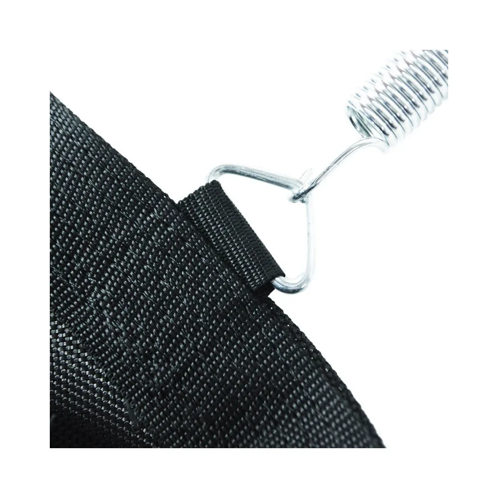 Po obvode má rovnomerne rozložené silné kovové háčiky na uchytenie pružín. Aby bola zaistená max. možná bezpečnosť, sú úchyty háčikov 8x prešité. Optimálne zvolený priemer samotnej skákacej plochy pasuje na väčšinu trampolín daného rozmeru.