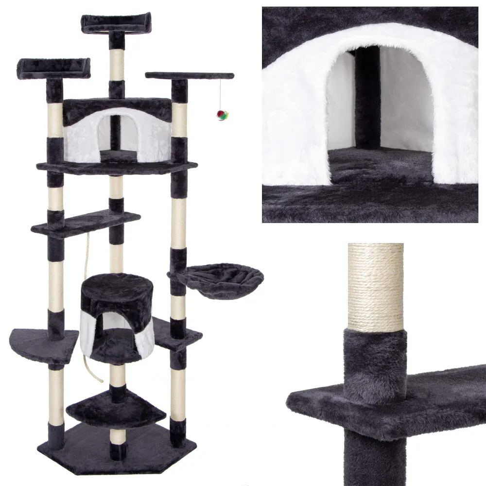 Luxusné a vysoké viacúrovňové mačacie škrabadlo s jedenástimi poschodiami. Ponúka stabilnú a odolnú konštrukciu, príjemný poťah, dva útulné domčeky a vyvýšenú posteľ. Škrabadlo má veľké množstvo sisalových plôch, dve hračky a odpočívadlá pre maximálne pohodlie mačiek.