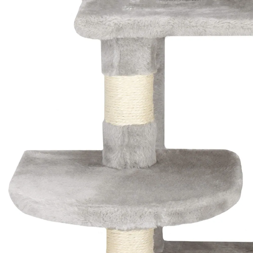 Vďaka stabilnej a odolnej konštrukcii je škrabadlo bezpečné pre aktívne mačky, ktoré rady šplhajú a skotačia. Sisalové tyče ponúkajú mačkám perfektné miesto na brúsenie pazúrikov, čím zároveň chránia váš nábytok pred poškodením. Príjemný zamatový poťah dodáva celému škrabadlu nielen luxusný vzhľad, ale taktiež zaisťuje maximálne pohodlie pre mačky počas odpočinku.