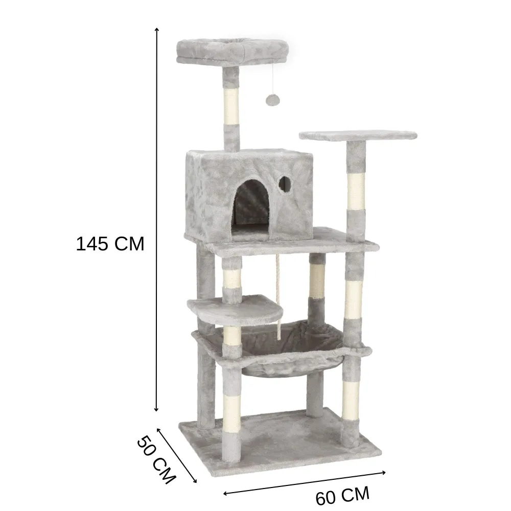 Škrabadlo pre mačky Domček s hojdacím kreslom 6 poschodí 145 cm SPRINGOS PA1049 je ideálnym riešením pre náročných majiteľov mačiek, ktorí hľadajú kombináciu zábavy, komfortu a odpočinku pre svojich miláčikov. Toto viacúrovňové škrabadlo so šiestimi poschodiami poskytuje mačkám bohaté možnosti na šplhanie, hru aj odpočinok, čo uspokojuje ich prirodzené inštinkty.
