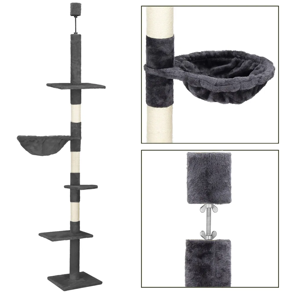 Škrabadlo pre mačky - Veža s odpočívadlami 4 poschodia 240-265 cm SPRINGOS PA1051 je ideálnym riešením pre všetkých majiteľov mačiek, ktorí hľadajú kvalitné vybavenie do menších priestorov. Vďaka svojmu kompaktnému dizajnu sa ľahko zmestí aj do menších miestností, a zároveň poskytne vašej mačke dostatok miesta na hranie, škrabanie a odpočinok.