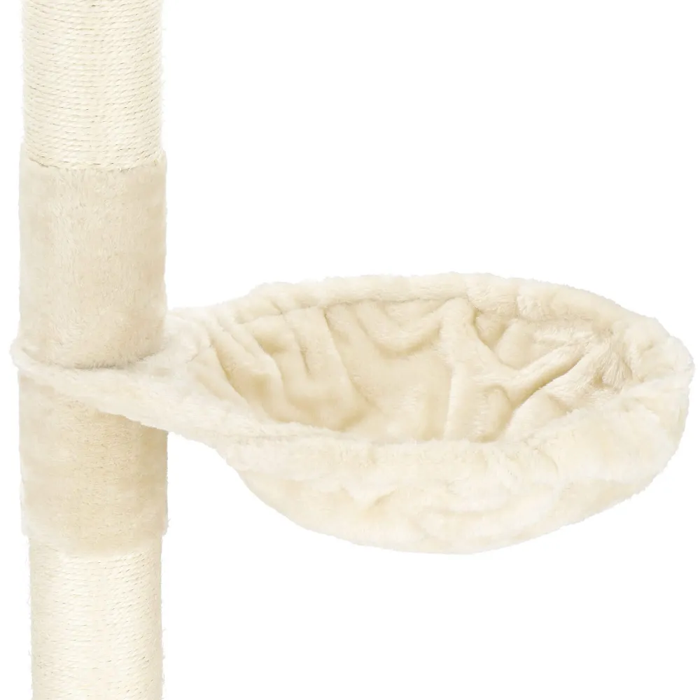 Úzke mačacie škrabadlo ideálne pre menšie priestory. Ponúka štyri poschodia s odpočívadlami, pohodlné kreslo a stabilnú teleskopickú rozperu do stropu (240-265 cm). Kombinuje príjemný zamatový materiál s sisalovými plochami na škrabanie, čo zaisťuje pohodlie a zábavu pre vašu mačku.