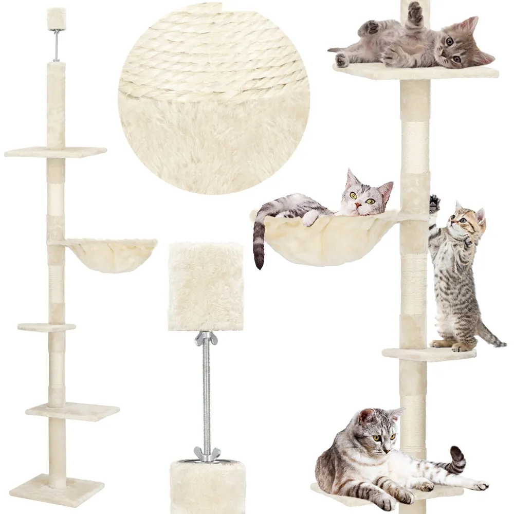 Škrabadlo pre mačky - Veža s odpočívadlami 4 patta 240-265 cm SPRINGOS PA1052 je ideálnym riešením pre všetkých majiteľov mačiek, ktorí hľadajú kvalitné vybavenie do menších priestorov. Vďaka svojmu kompaktnému dizajnu sa ľahko zmestí aj do menších miestností, a zároveň poskytne vašej mačke dostatok miesta na hranie, škrabanie a odpočinok.
