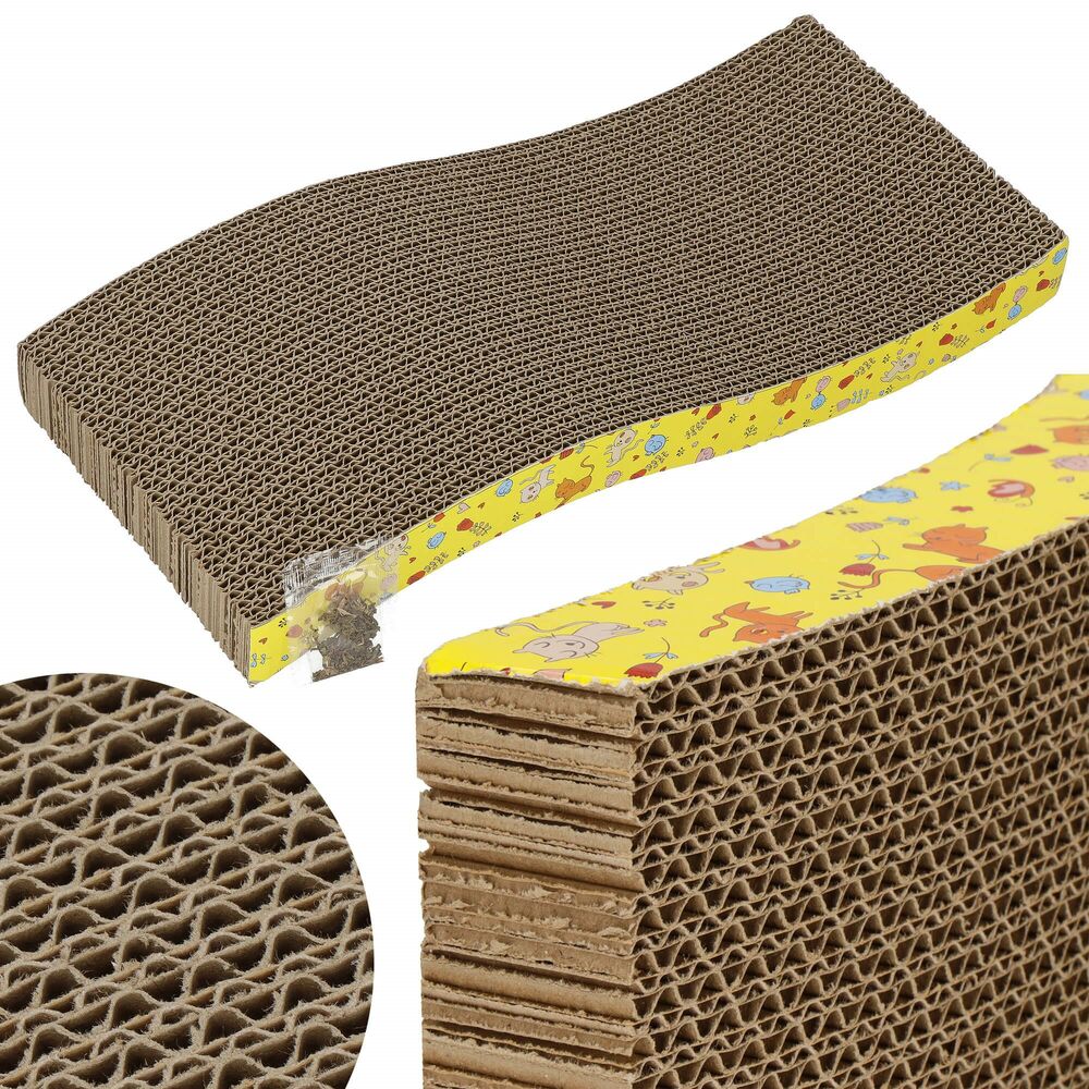 Mačacie škrabadlo z pevného vrstveného kartónu a optimálne zvlneným tvarom na škrabanie. Vyrobené z bezpečného a nezávadného materiálu. Súčasťou je balíček šanty mačacie, ktorý priťahuje a stimuluje mačky, zároveň pomáha znižovať stres a úzkosť. Ideálne pre zábavu a starostlivosť o pazúriky.