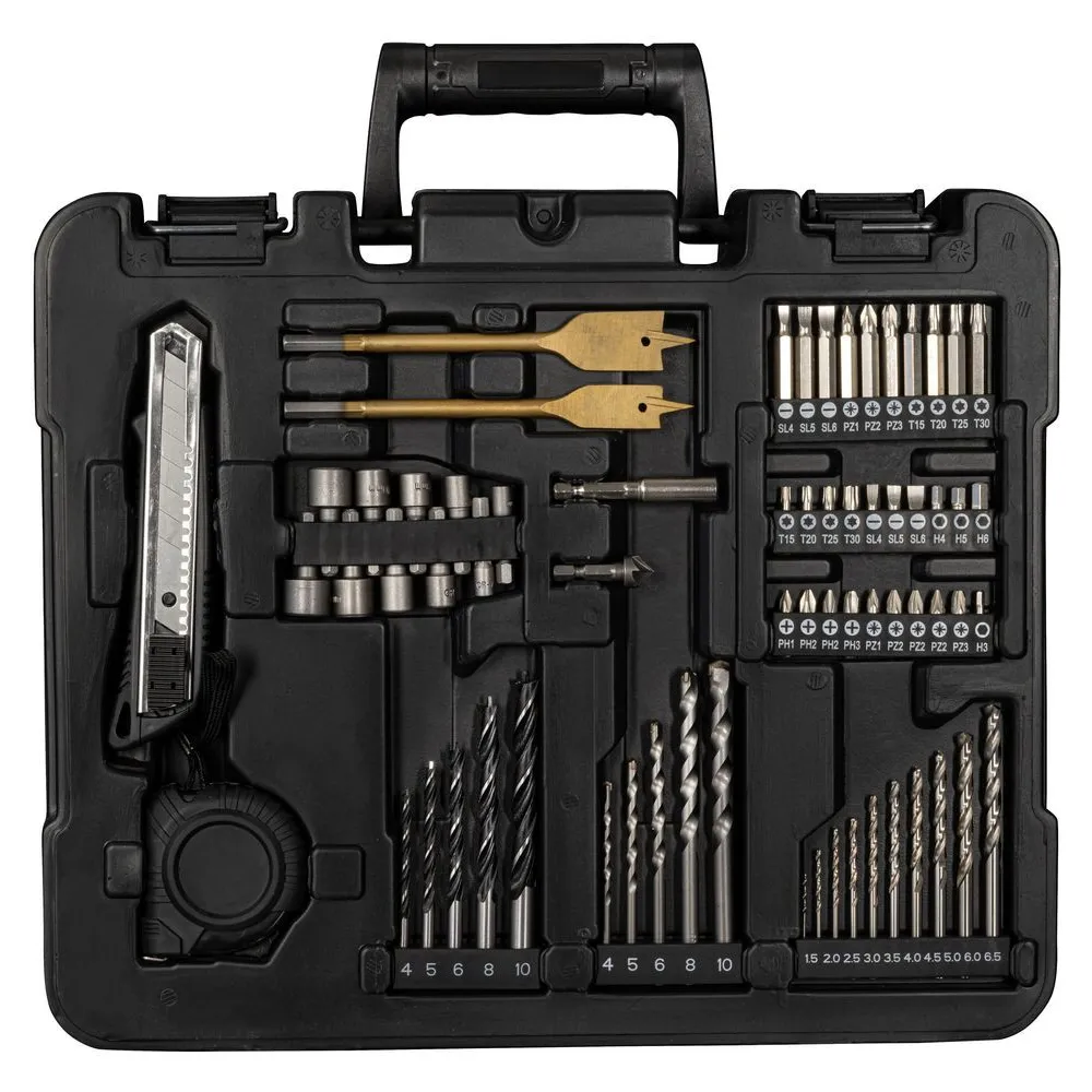 Kompaktný a výkonný akumulátorový vŕtací skrutkovač zo série akumulátorového náradia 18V E3, kufrík s kovovými prackami so 126-dielnym príslušenstvom. Robustná dvojrýchlostná prevodovka na optimálne využitie výkonu v rôznych materiáloch. Odnímateľné rýchloupínacie skľučovadlo 10 mm. Praktické upínanie bitov pod skľučovadlom. Vrátane akumulátora 2 Ah a rýchlonabíjačky 2,3 A.
