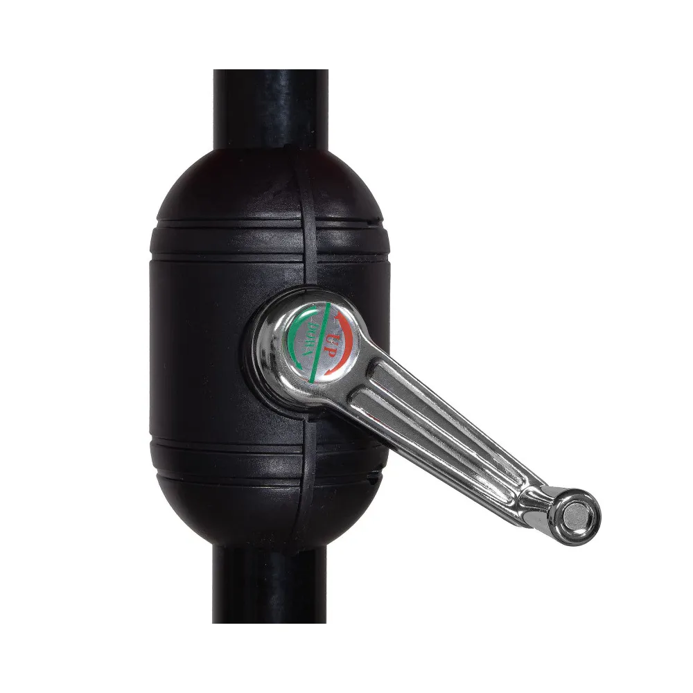 Naklápací záhradný slnečník s priemerom 290 cm. Komfortné nastavenie sklonu striešky, nepremokavá tkanina s UV filtrom, horné odvetrávanie pre optimálnu klímu, stabilná kovová konštrukcia, kľukový mechanizmus.