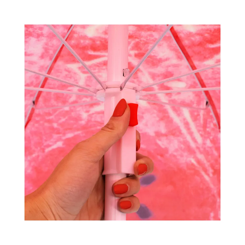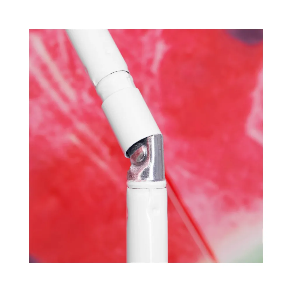 Strieška slnečníka sa skladá z ôsmich častí. Rozkladanie aj skladanie je veľmi intuitívne a jednoduché . Stačí stlačiť červené tlačidlo, ktoré uvoľňuje a súčasne aj zaisťuje zvolenú polohu.