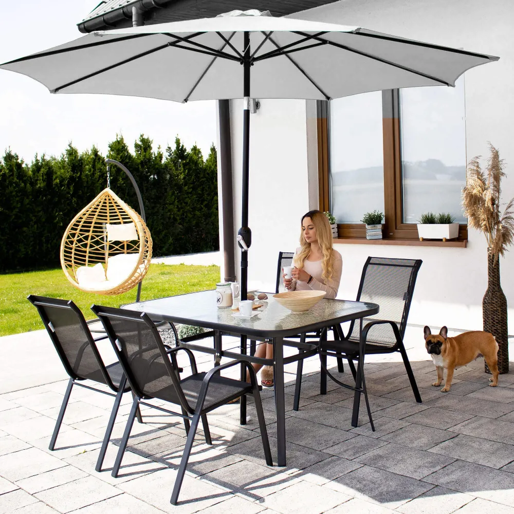 Záhradný slnečník s bočnou nohou s priemerom 290 cm. Vodeodolný materiál, UV filter, nastavenie výšky a uhla sklonu, kľukový mechanizmus....