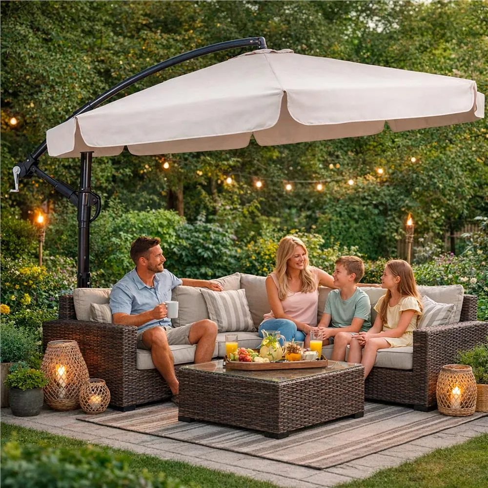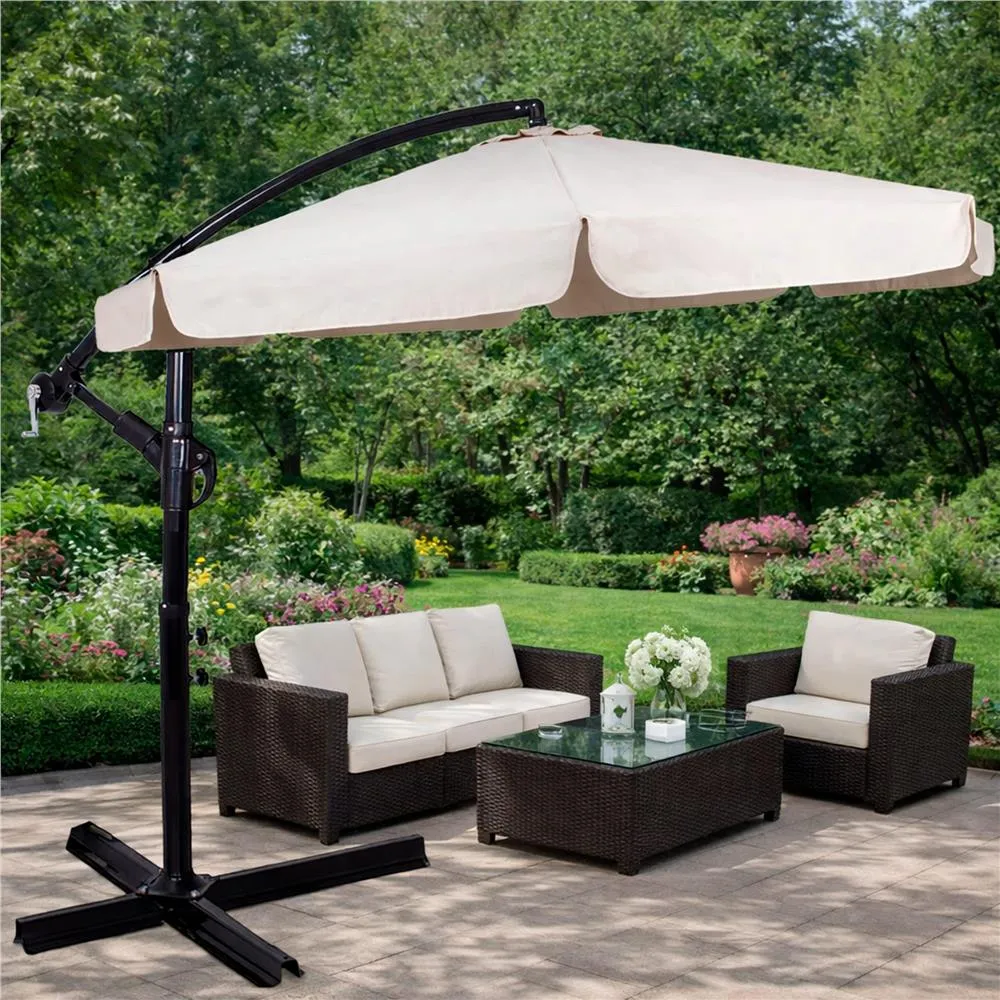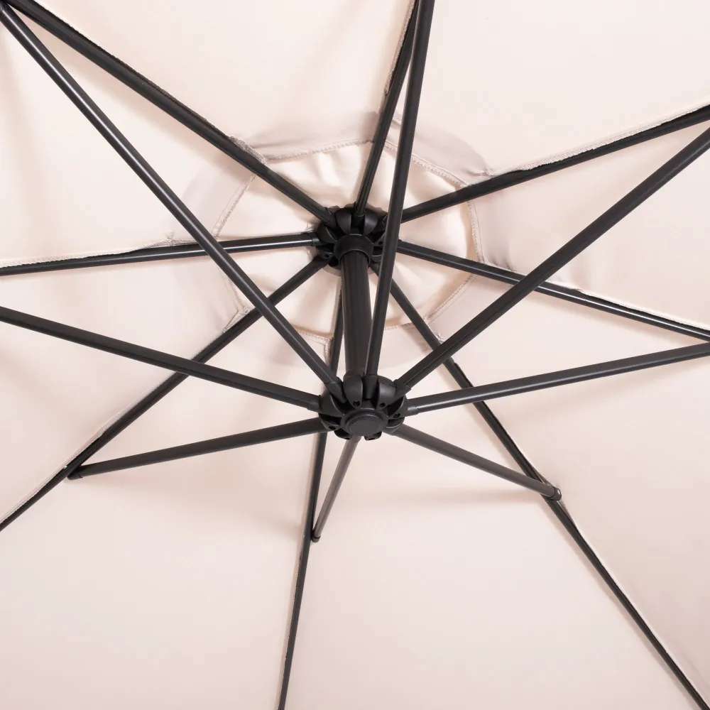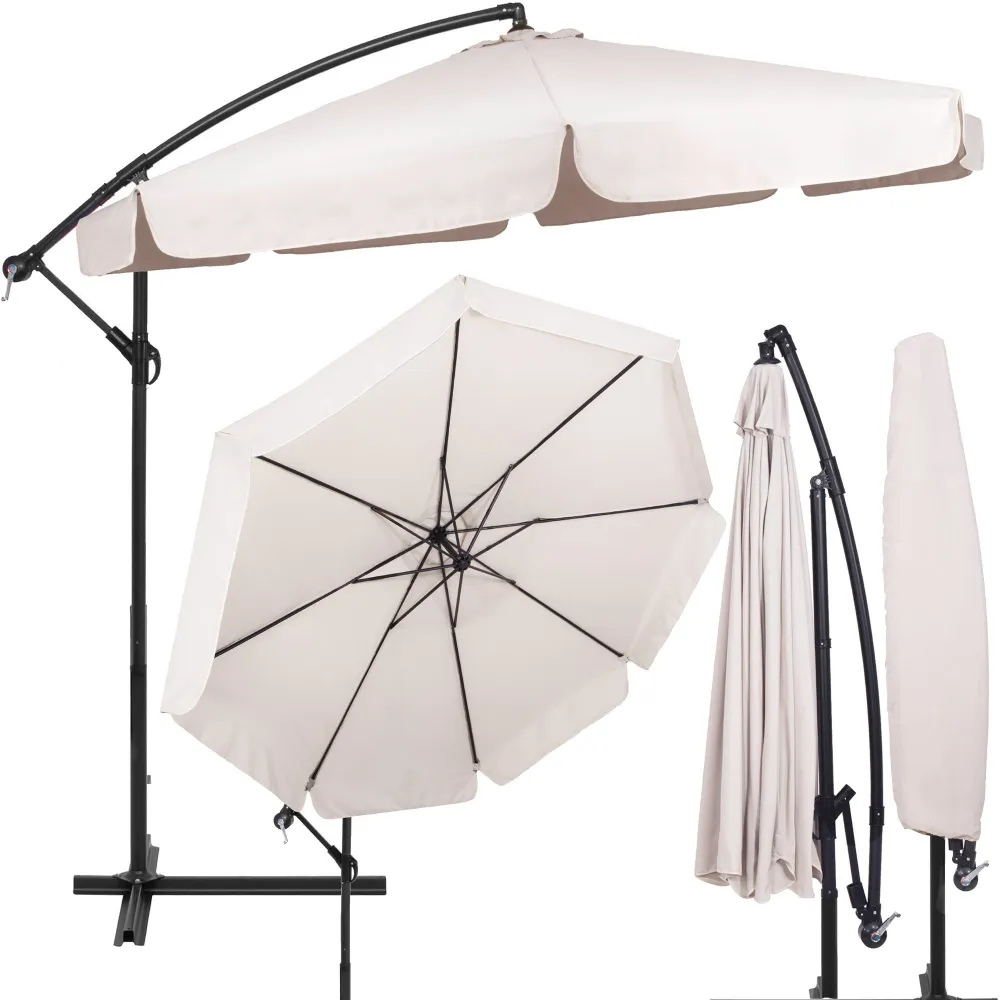 Záhradný slnečník 290 cm, krémový SPRINGOS MALTA GU0045 poskytuje dostatok tieňa pre pohodlné posedenie vonku . Vďaka bočnej konštrukcii neprekáža uprostred priestoru a umožňuje lepšie využitie miesta pod slnečníkom.
