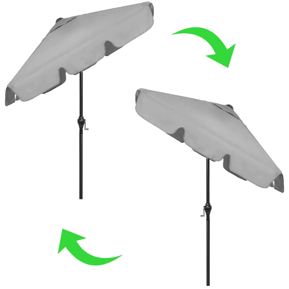 Obdĺžnikový záhradný slnečník s rozmermi 120×200 cm je ideálny aj pre menšie priestory. Odolný voči vode, UV žiareniu a poveternostným vplyvom, poskytne spoľahlivú ochranu počas horúcich aj daždivých dní. Kľukový skladací mechanizmus a nastaviteľný sklon striešky zaisťujú jednoduché ovládanie. Ventilačné otvory zlepšujú cirkuláciu vzduchu, efektné volániky dodávajú štýlový vzhľad.