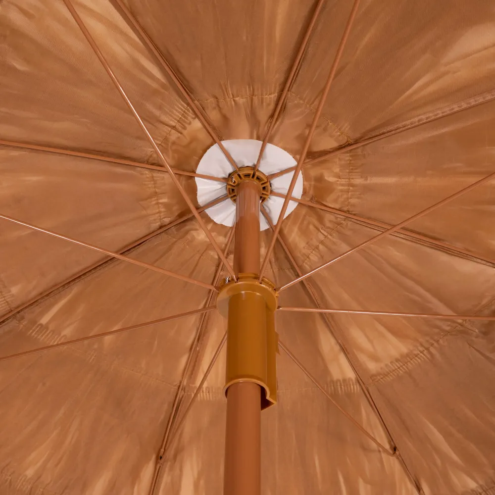 Záhradný slnečník SPRINGOS HAVAJ BU0023 v hnedom prevedení so strapcami je ideálnym spoločníkom pre letné dni strávené na záhrade, balkóne alebo pláži. Vďaka nastaviteľnému sklonu a výške ľahko prispôsobíte uhol tienenia podľa polohy slnka. Vodeodolná strieška z odolného materiálu s 8-panelovou konštrukciou zaisťuje spoľahlivú ochranu nielen pred slnkom, ale aj pred ľahkým dažďom.