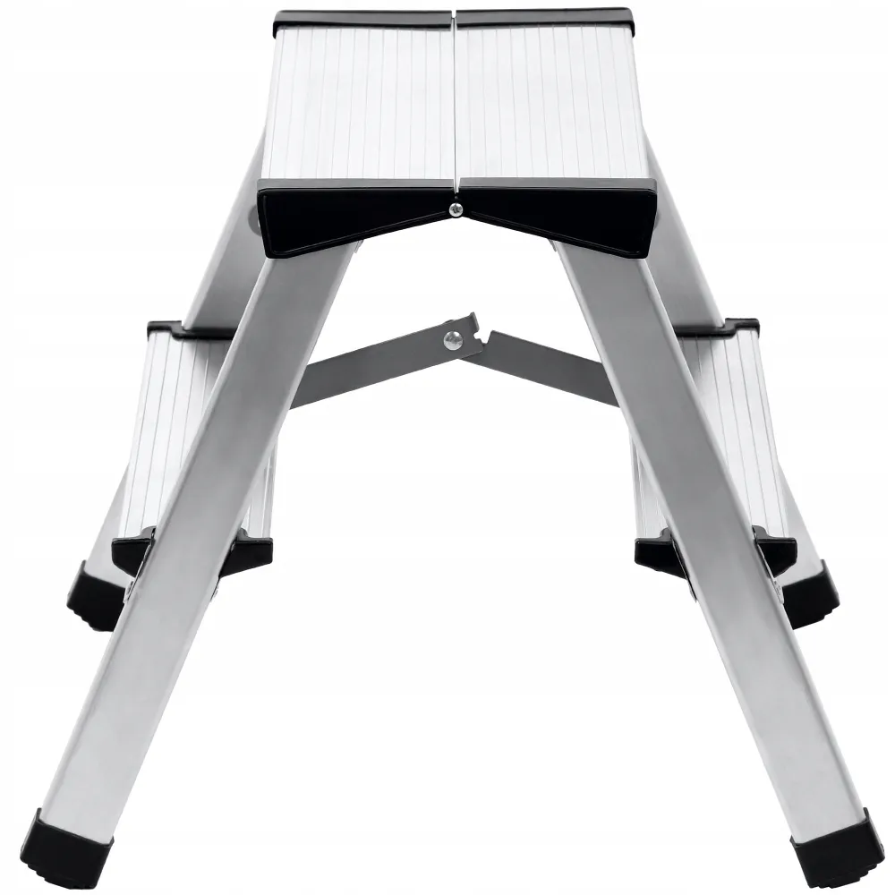 Obojstranné schodíky sú vyrobené z odolného a ľahkého hliníka. Sú veľmi dobre manipulovateľné av zloženom stave zaberú málo miesta.