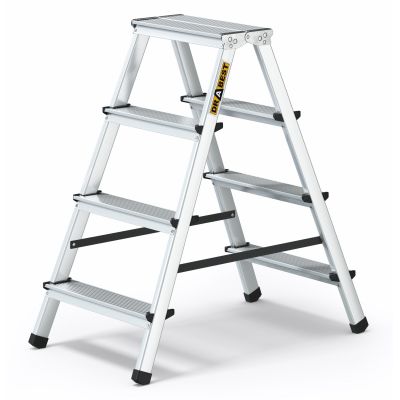 Obojstranné schodíky sú vyrobené z odolného a ľahkého hliníka. Sú veľmi dobre manipulovateľné av zloženom stave zaberú málo miesta.