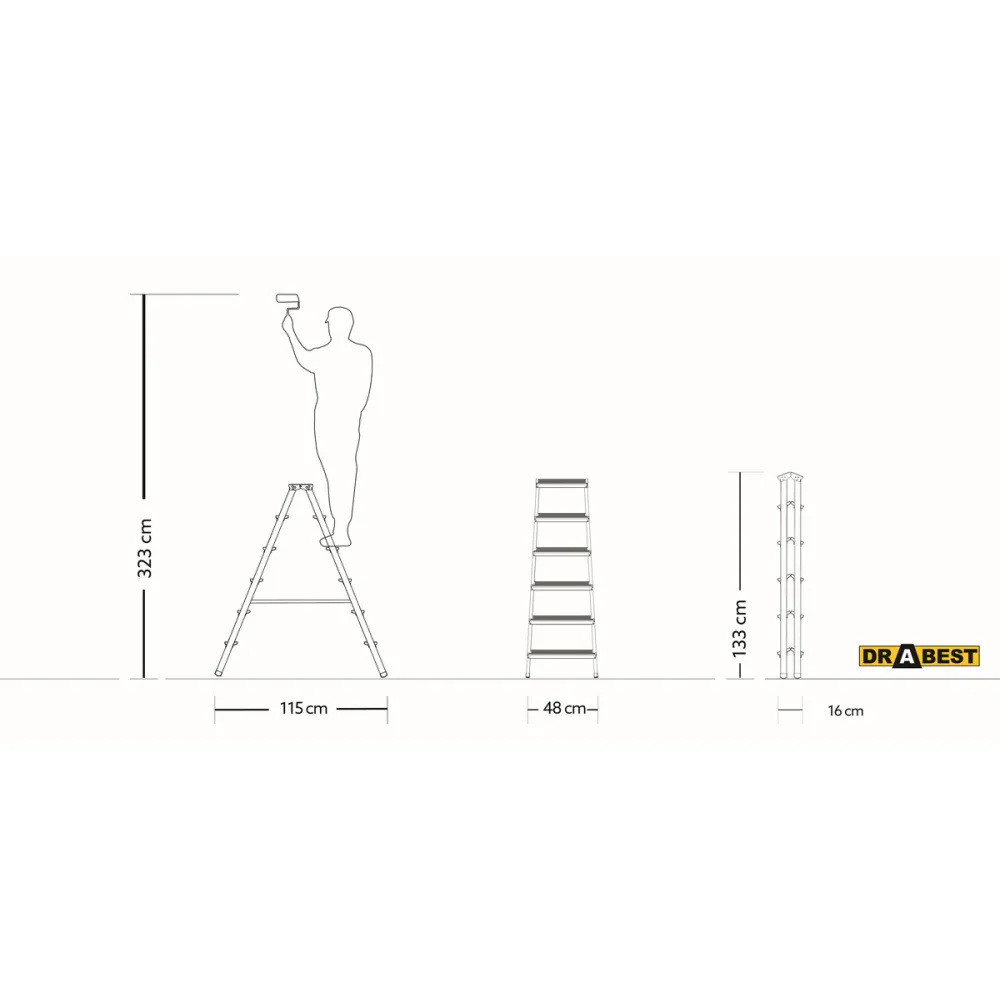 Hliníkové štafle 2x6 stupňov obojstranné DRABEST DD6 HOME