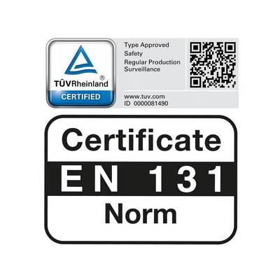 - Certifikácia TÜV Rheinland, EN 131 pre profesionálne použitie