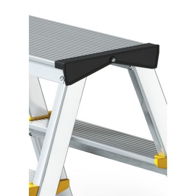 Obojstranné schodíky sú vyrobené z vysoko odolného a ľahkého hliníka. Sú veľmi dobre manipulovateľné av zloženom stave zaberú málo miesta.