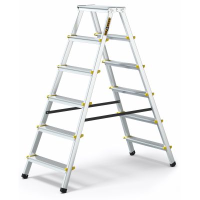 Profesionálne hliníkové štafle / schodíky pre každodenné intenzívne používanie , 6 stupňov, max. pracovná výška 3,23 m, nosnosť 150 kg. Certifikácia TÜV Rheinland, EN 131 pre profi použitie.